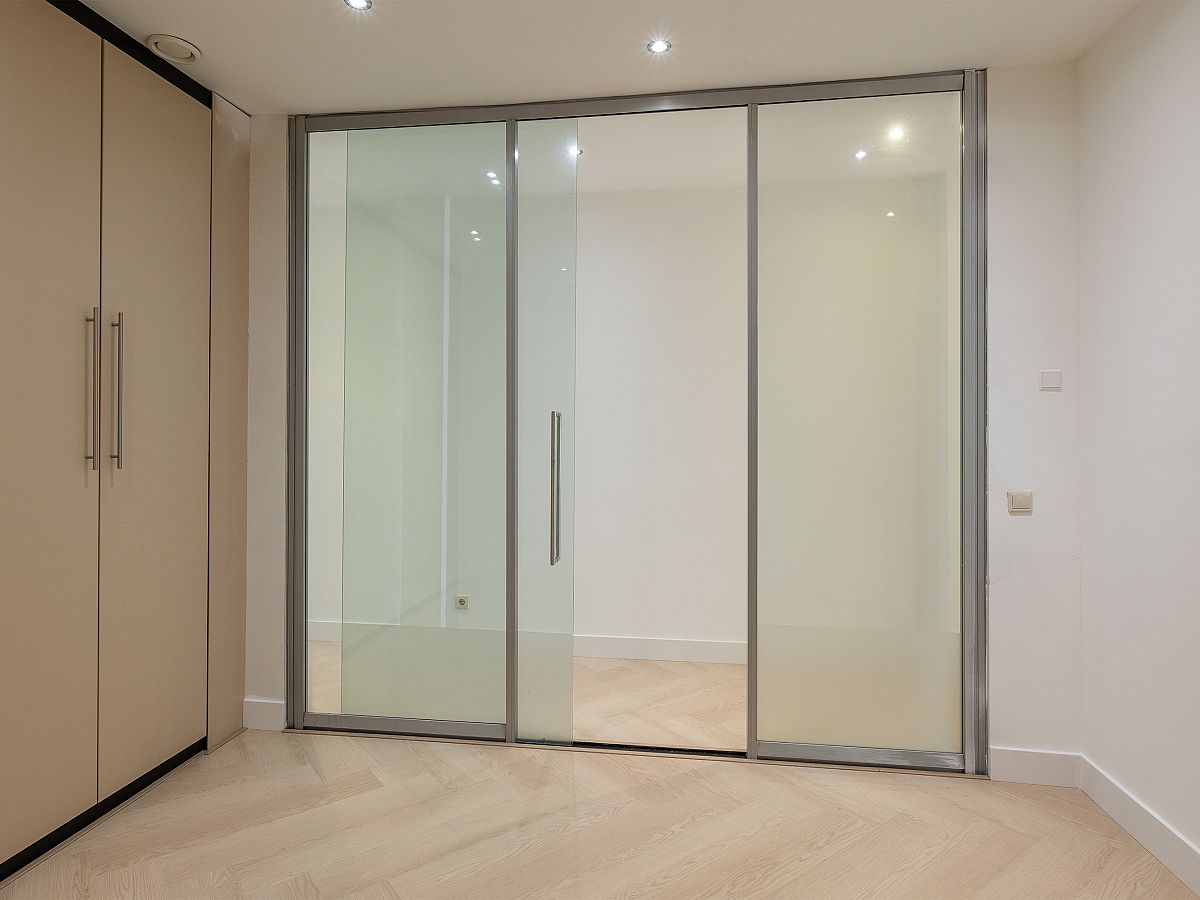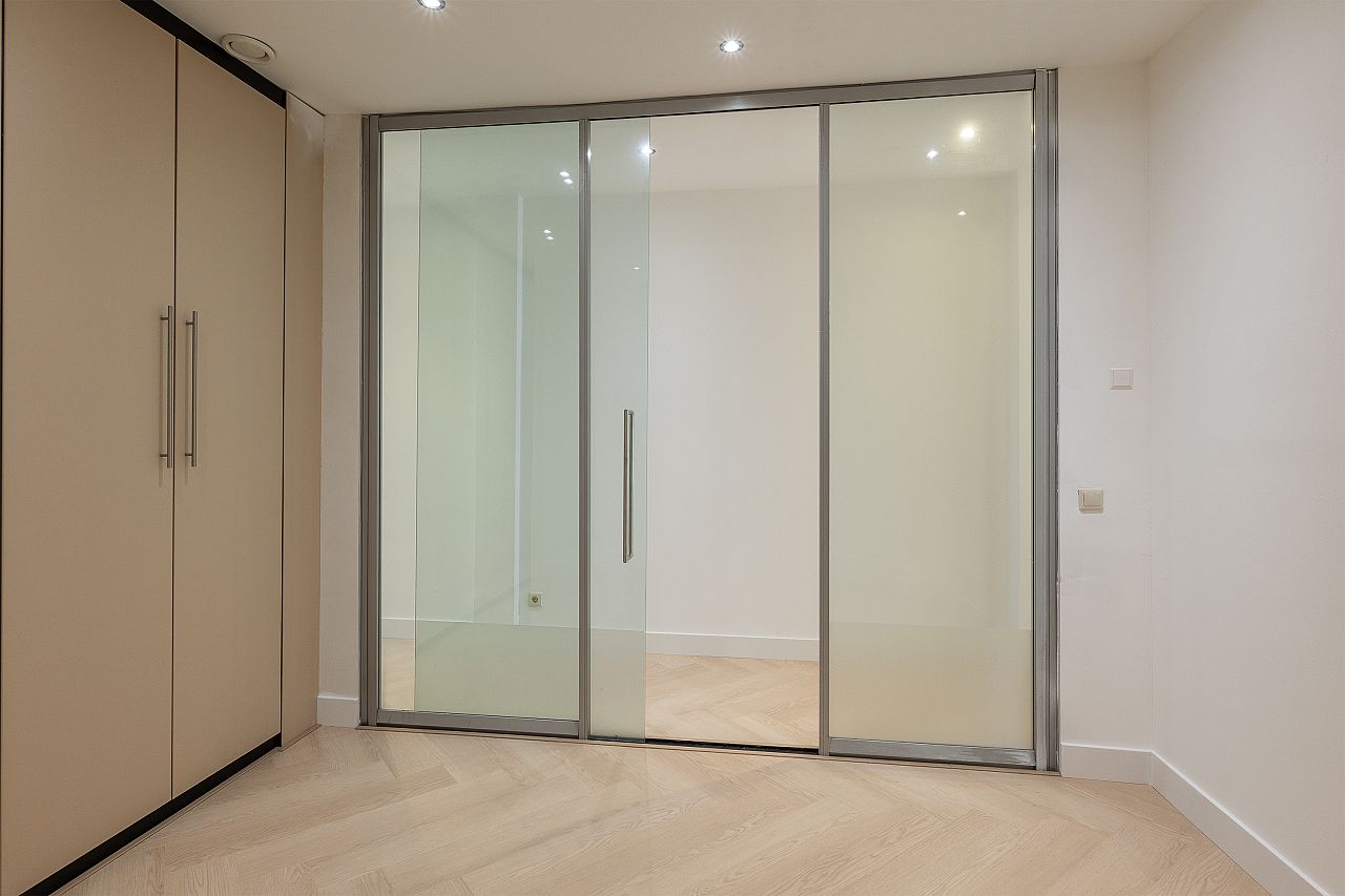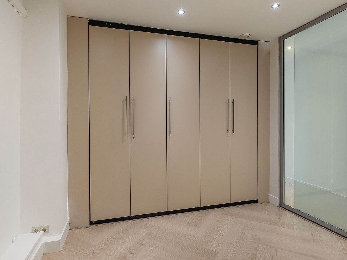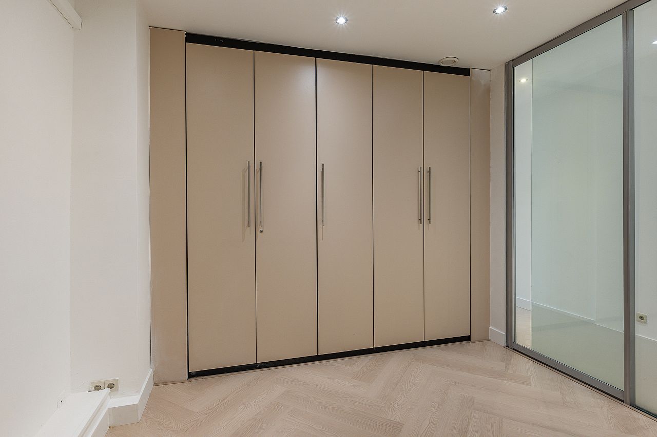 Via de gang achterin kom je bij een kamer met airco en vaste kastenwand.