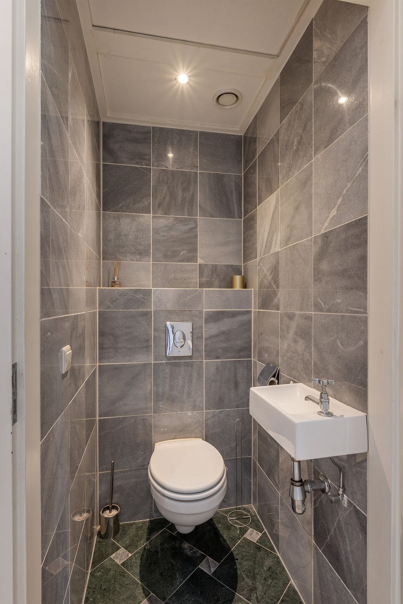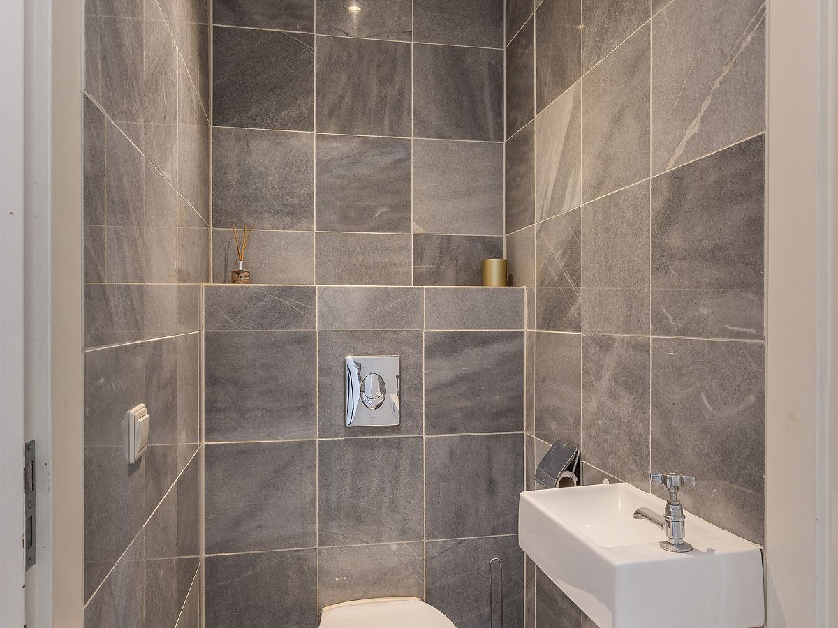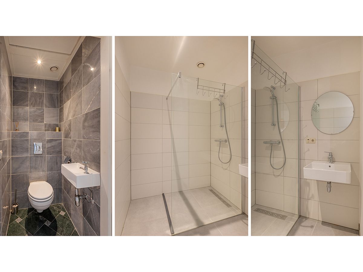 Er is een aparte toiletruimte met hangend closet en handwasbakje.