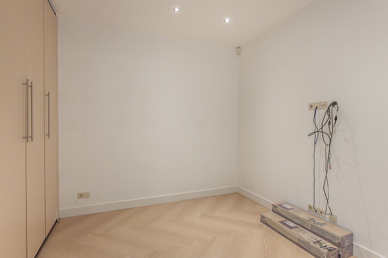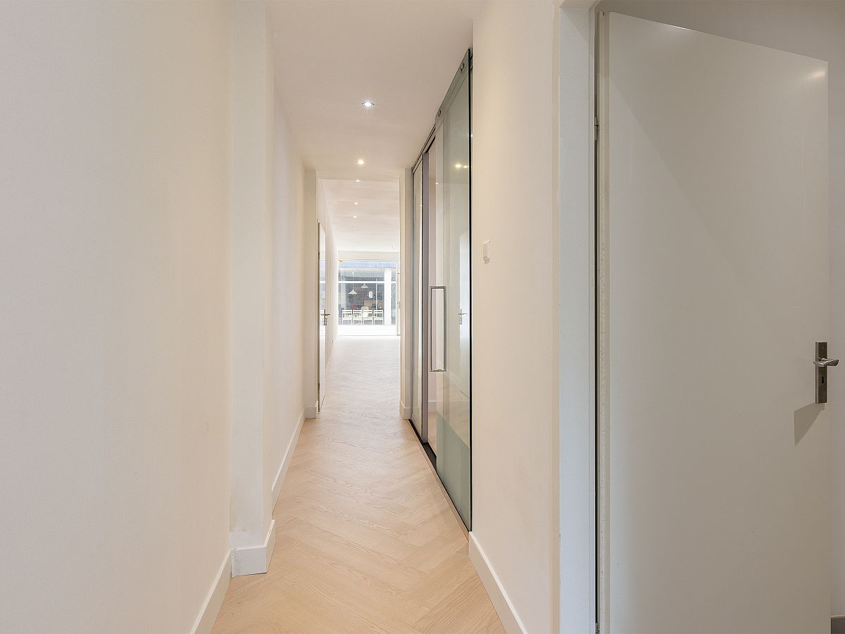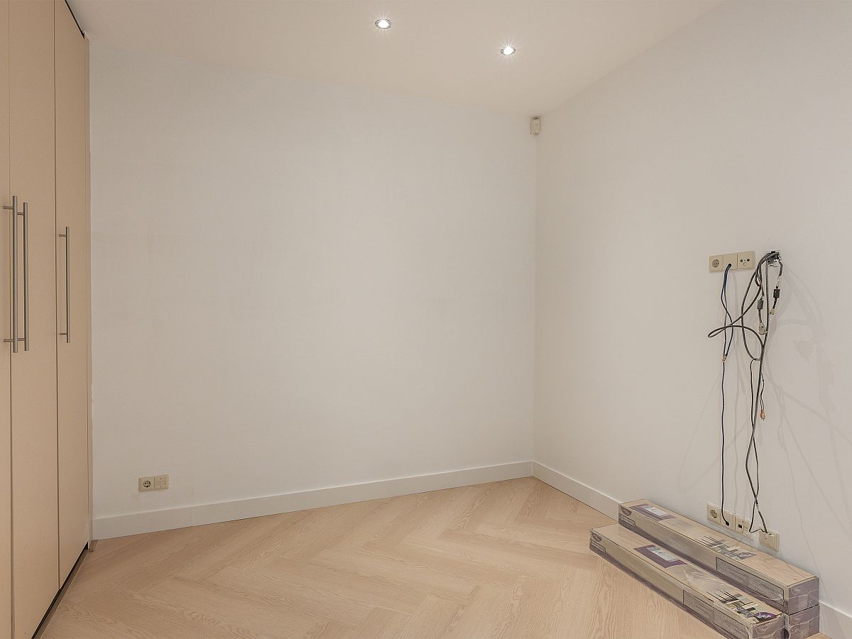 De vloer is afgewerkt met een lichte visgraat laminaatvloer, de wanden zijn allen glad gestuukt.