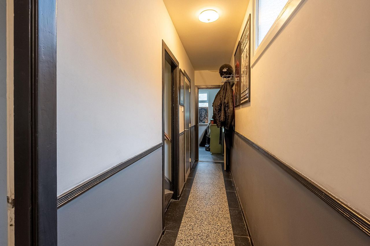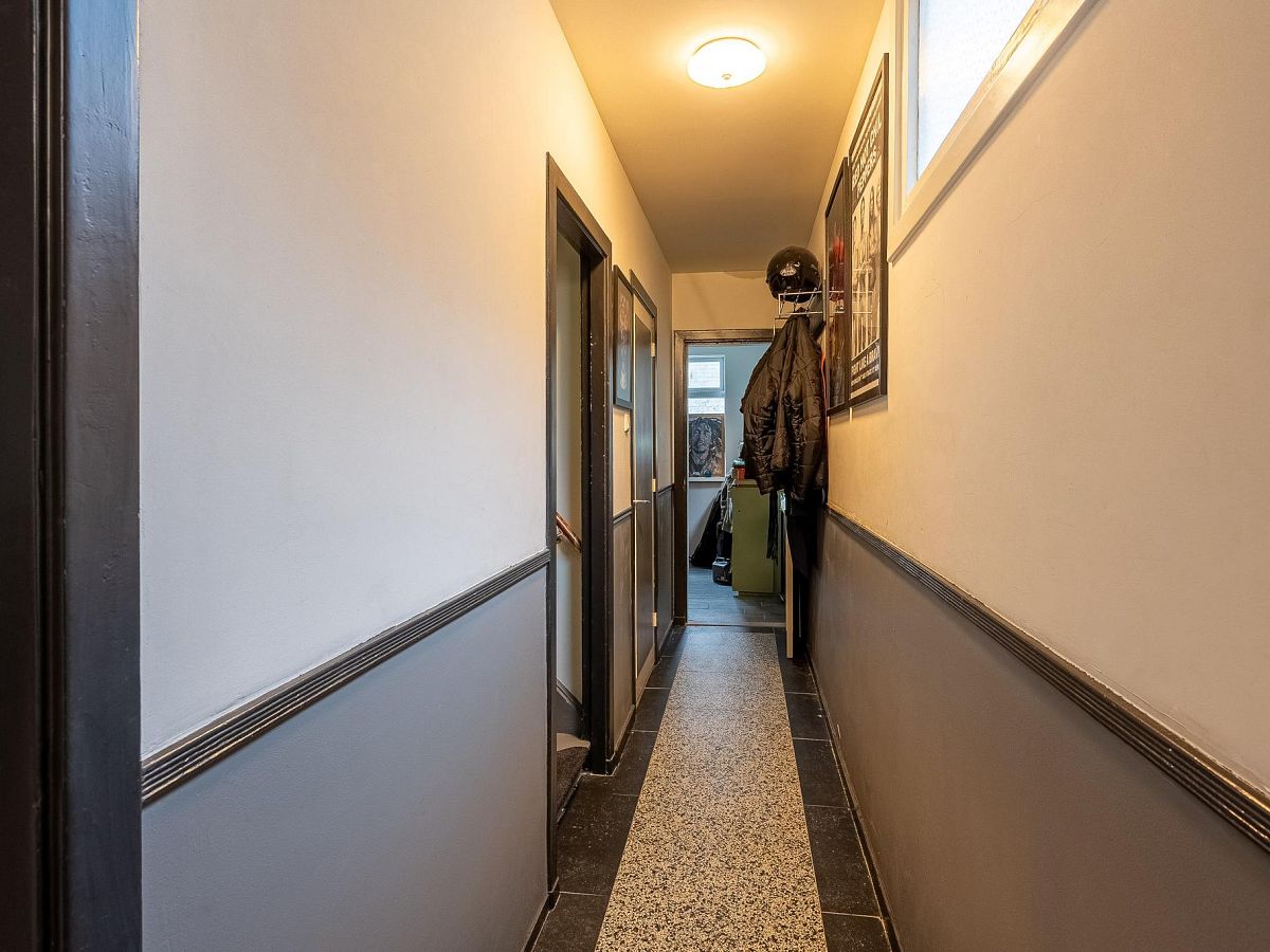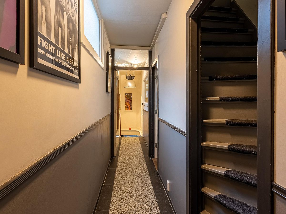 Entree van de woning met de trapopgang. Meterkast; trapopgang naar de woonetage.
