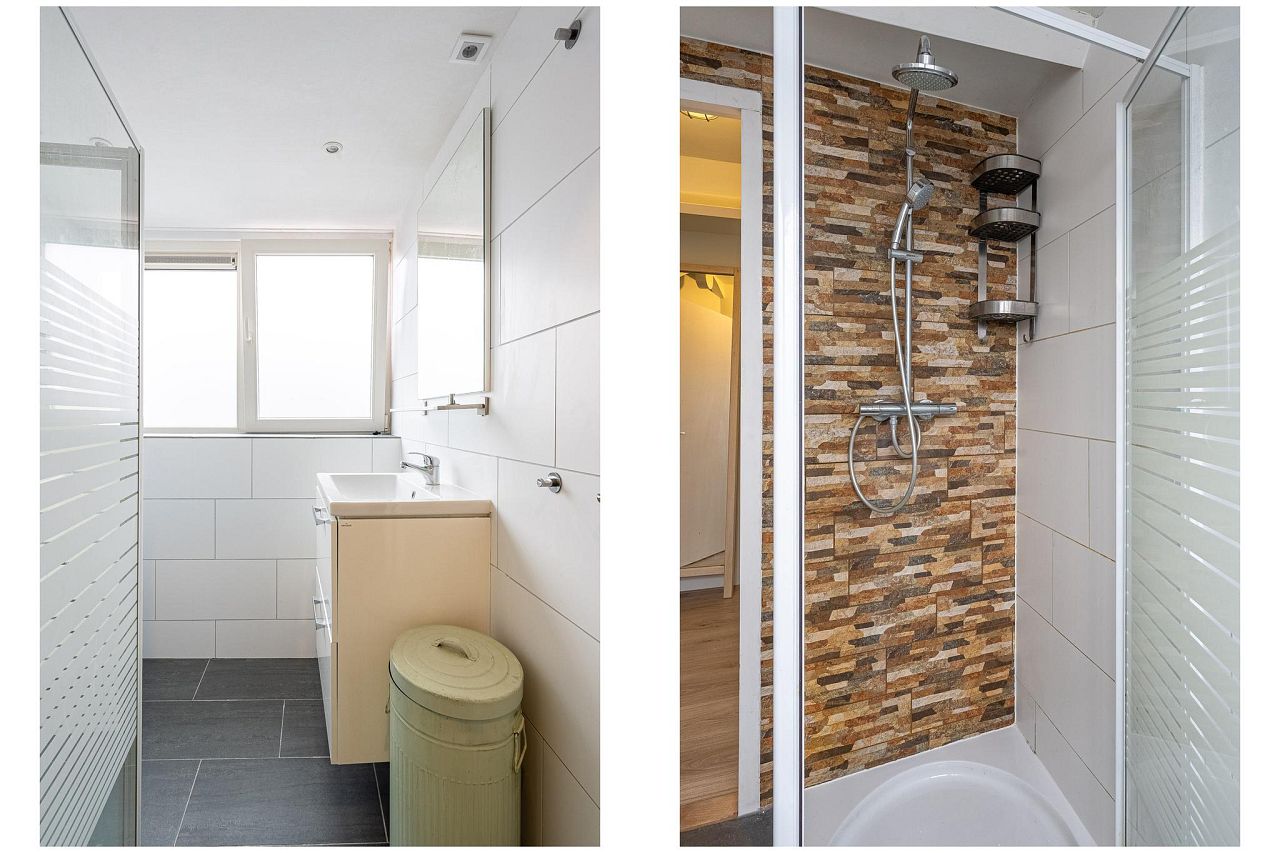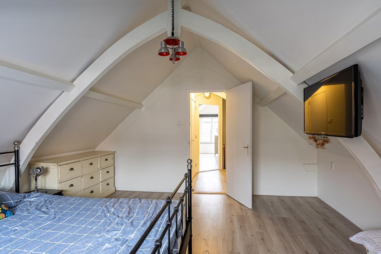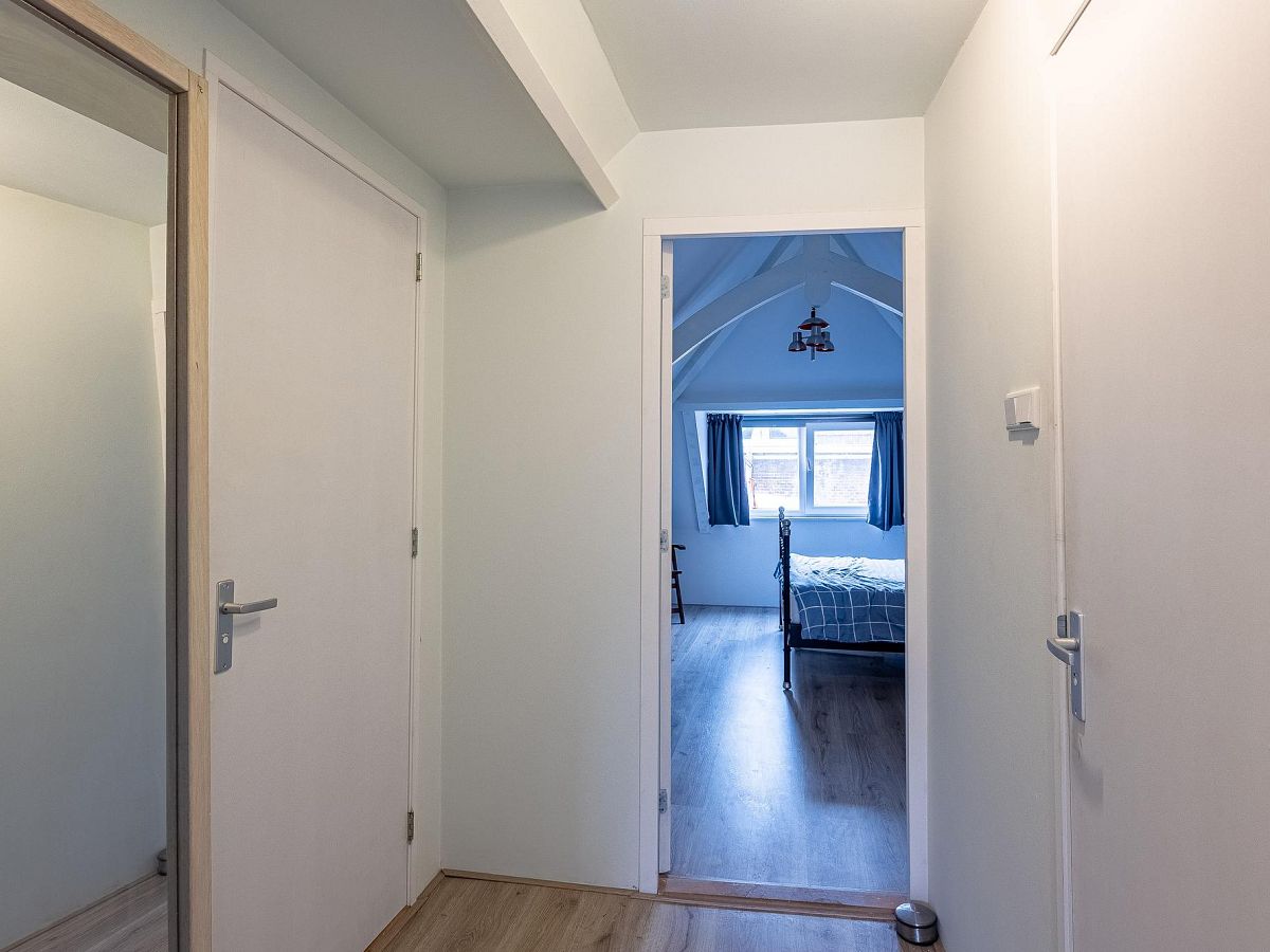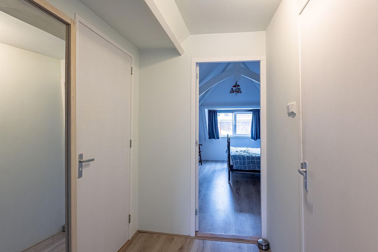 Overloop met cv combiketel (Remeha 2019); toiletruimte; wit betegelde badkamer met douchehoek, wastafelmeubel en inbouwspots. Achterslaapkamer voorzien van laminaatvloer, kunststof kozijnen en dubbel glas, ruime walk-in-closet. Ruime voorslaapkamer met originele sfeervolle balken, kunststof kozijnen en laminaatvloer.