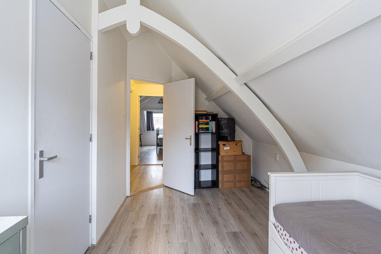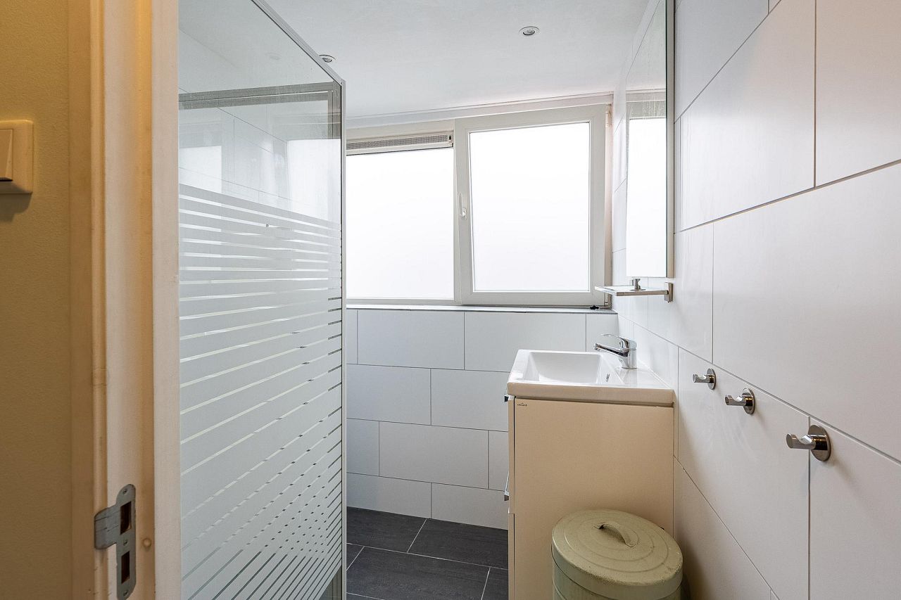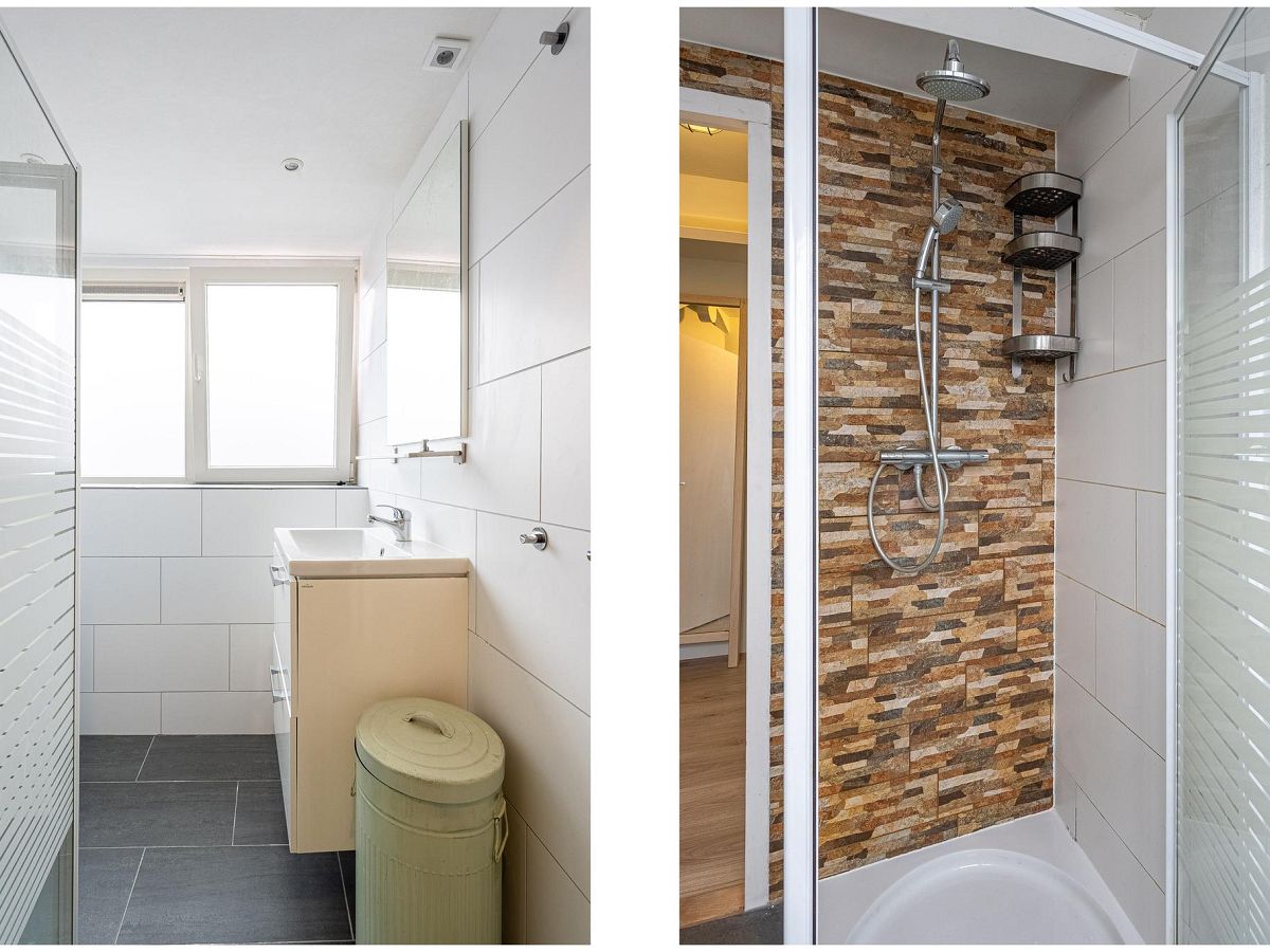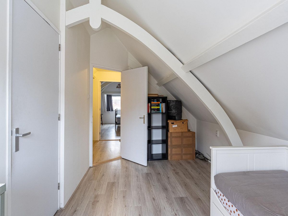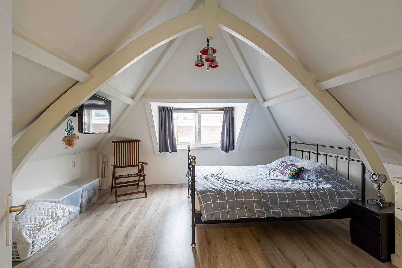 Overloop met cv combiketel (Remeha 2019); toiletruimte; wit betegelde badkamer met douchehoek, wastafelmeubel en inbouwspots. Achterslaapkamer voorzien van laminaatvloer, kunststof kozijnen en dubbel glas, ruime walk-in-closet. Ruime voorslaapkamer met originele sfeervolle balken, kunststof kozijnen en laminaatvloer.