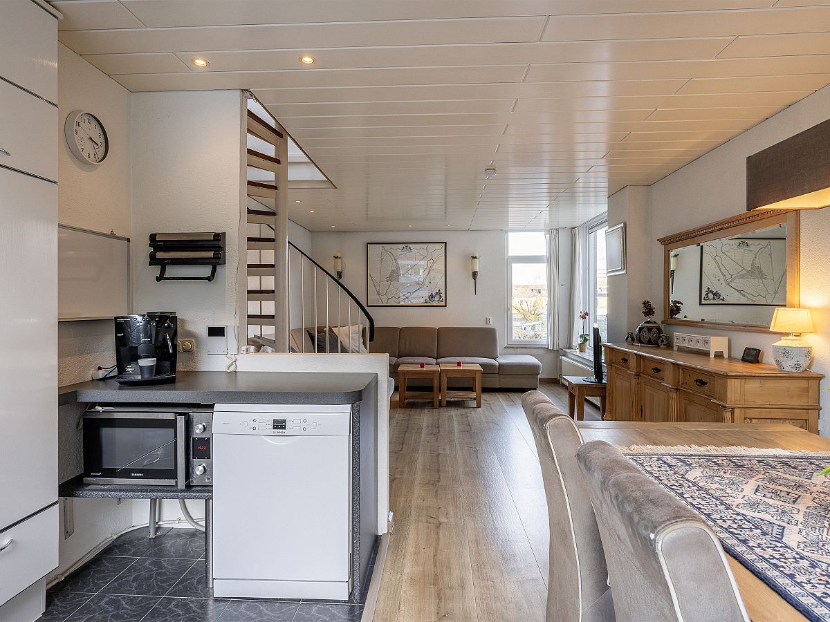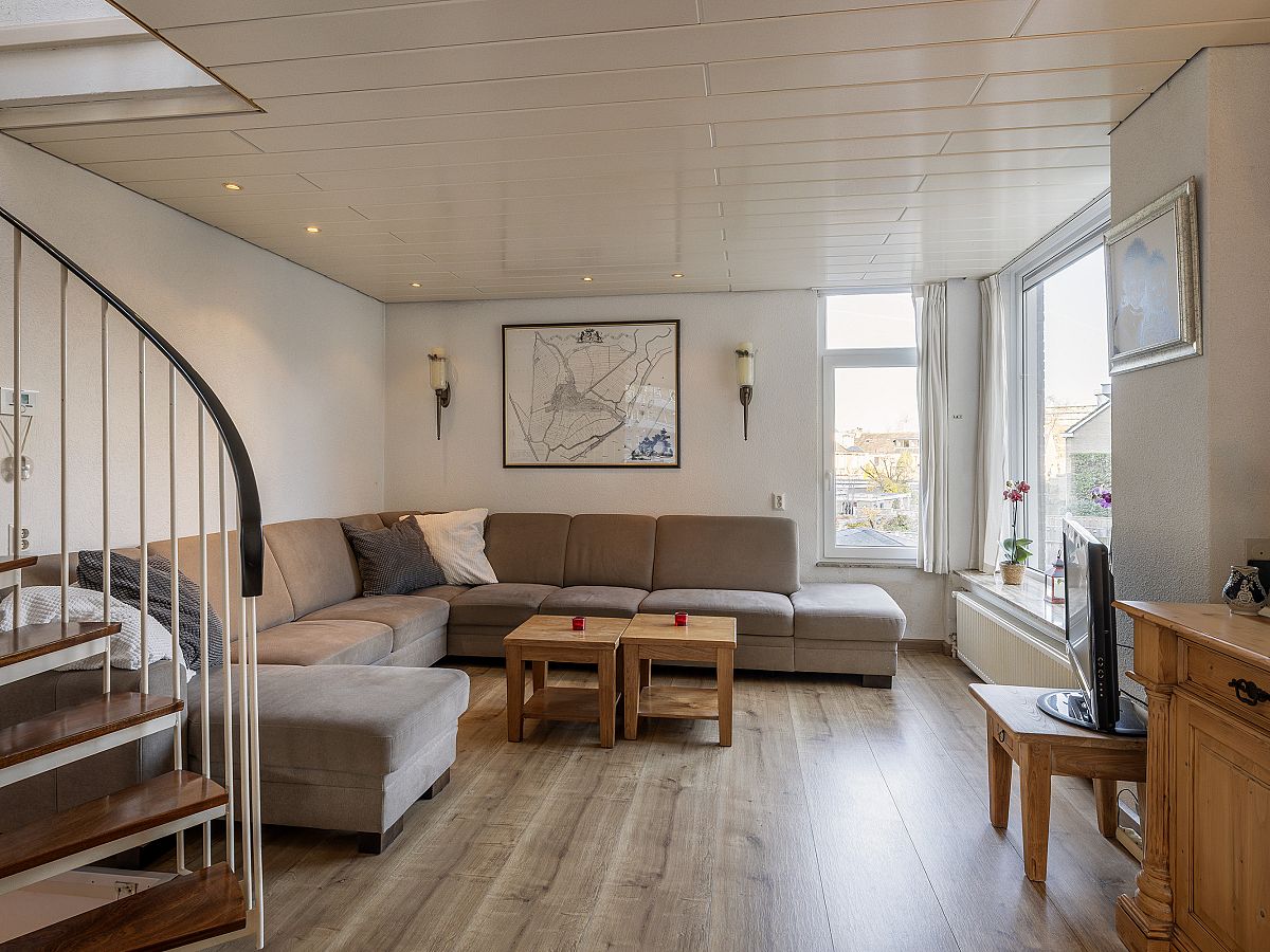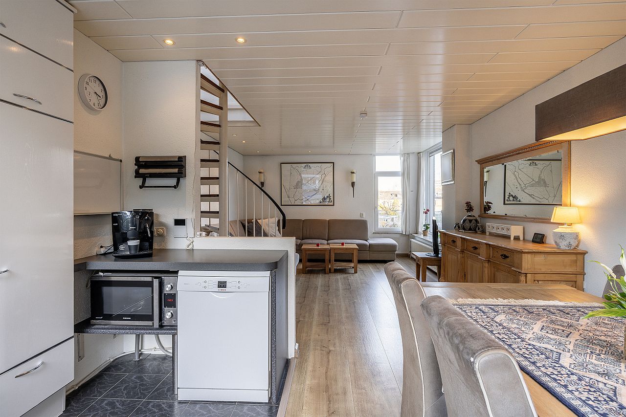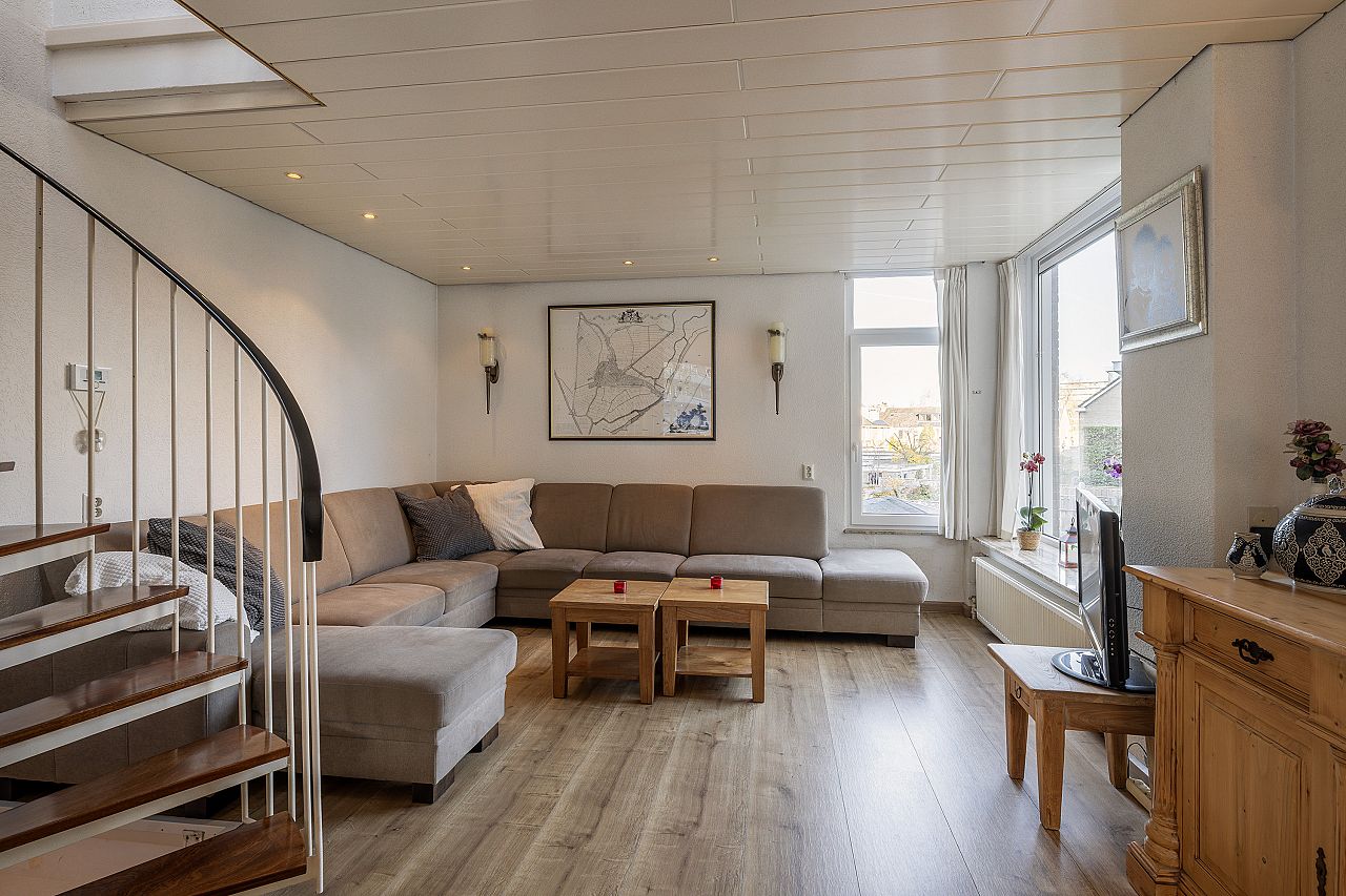 Op de 1e verdieping is een ruime woonkamer met open keuken. Direct aan de keuken grenst een zonnig op het zuidwesten gelegen terras.