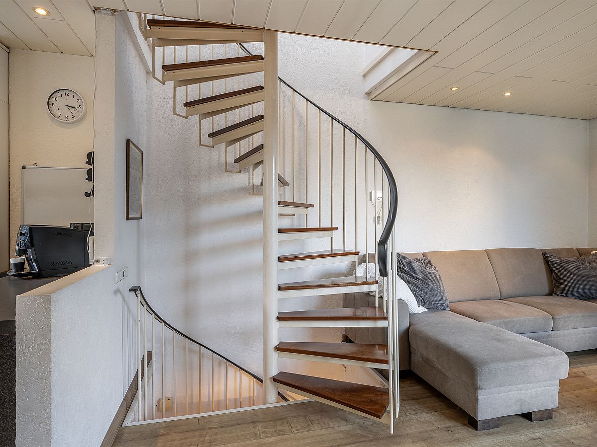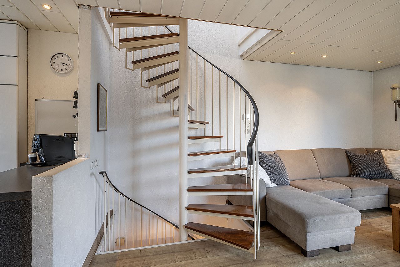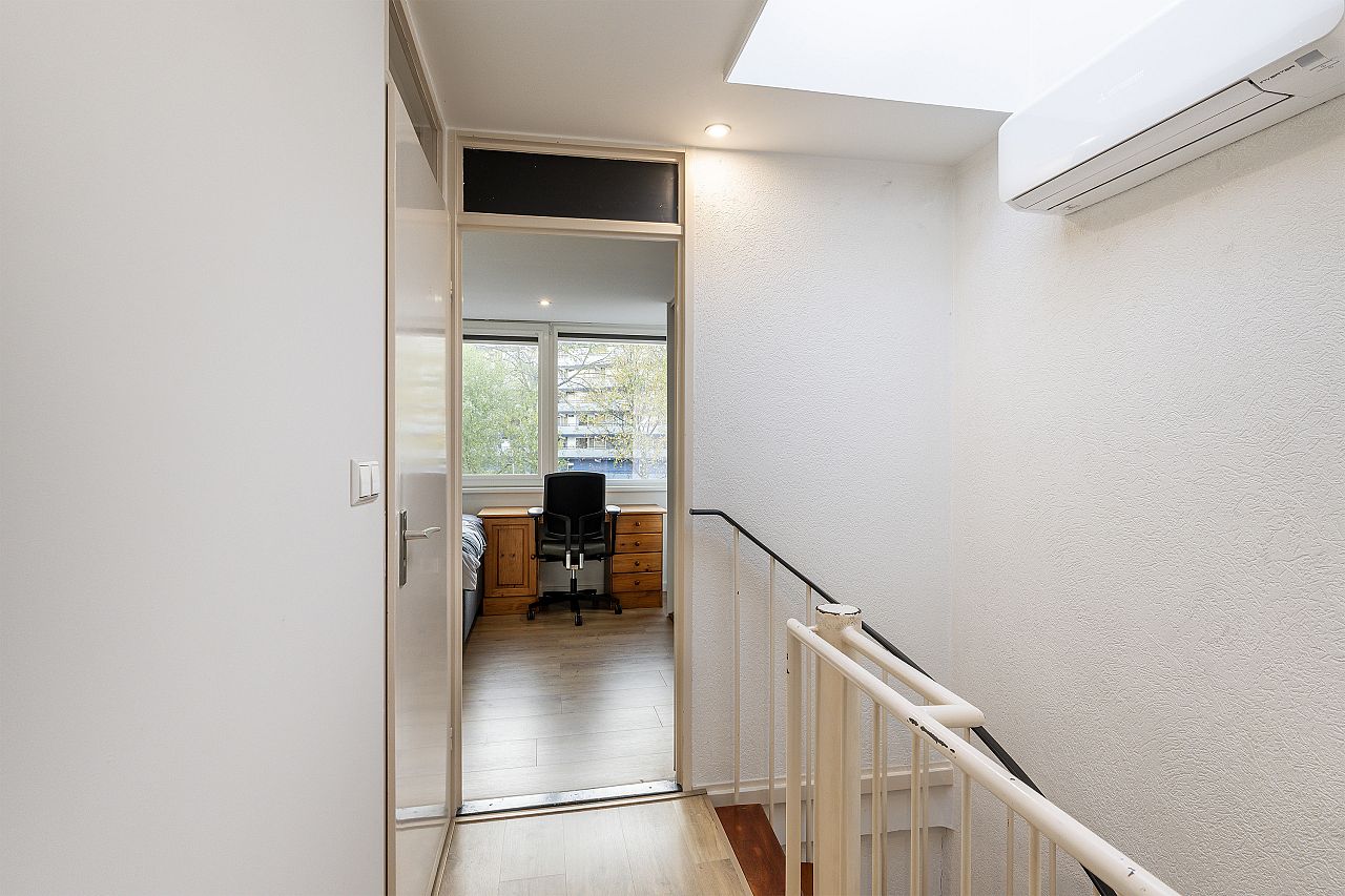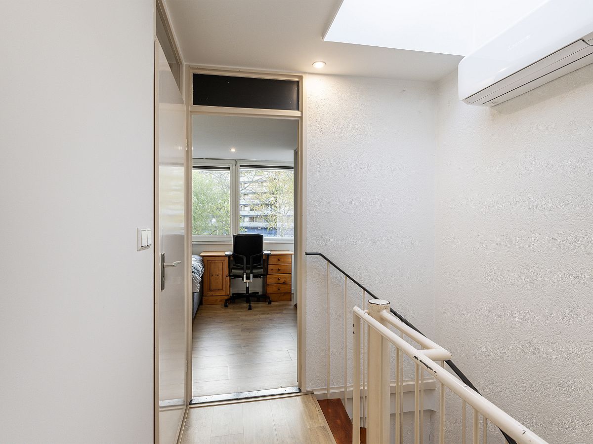 Ruime overloop met een lichtkoepel en airco.
