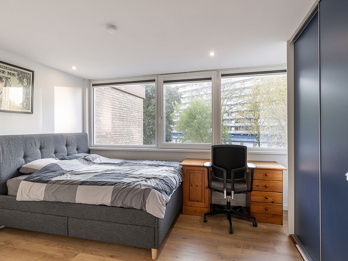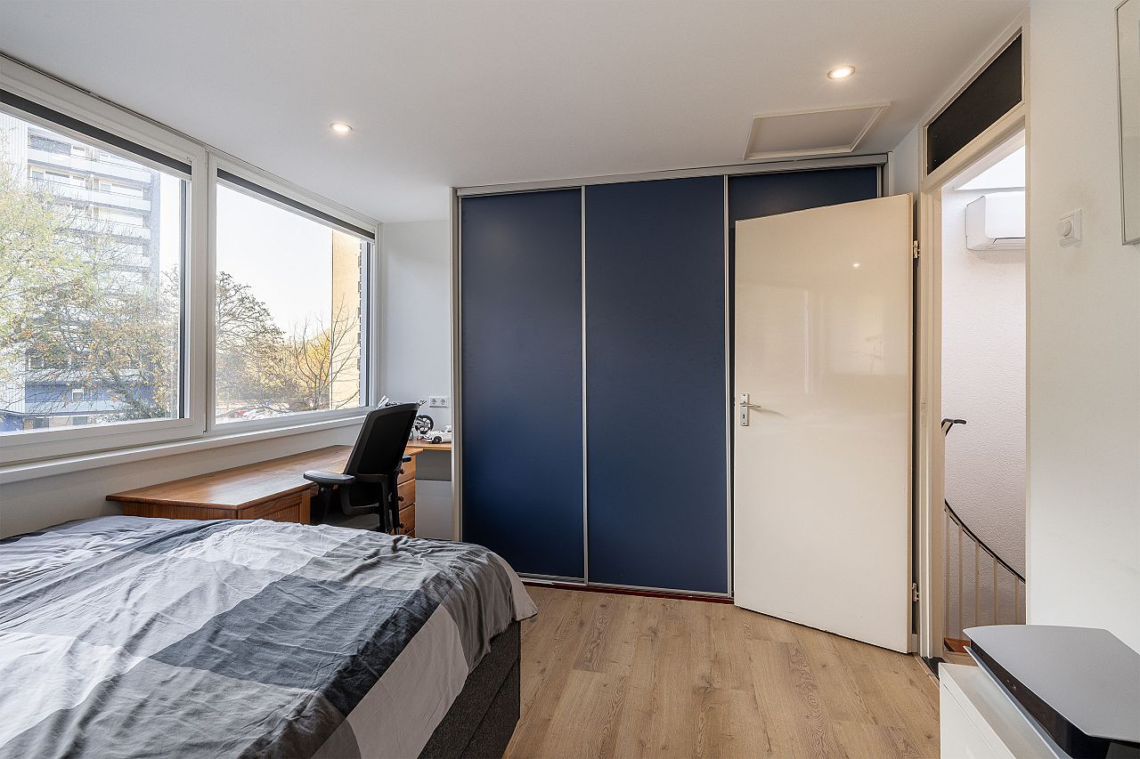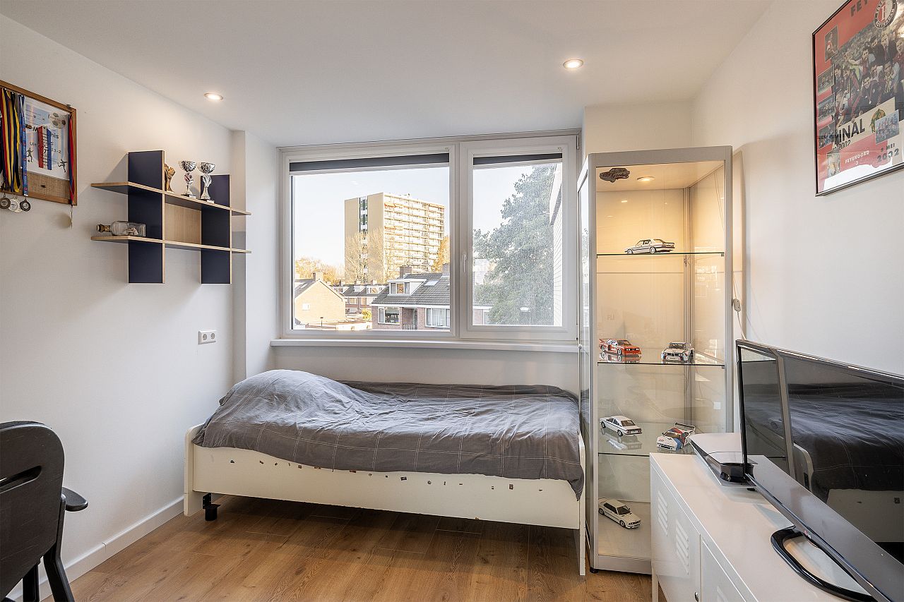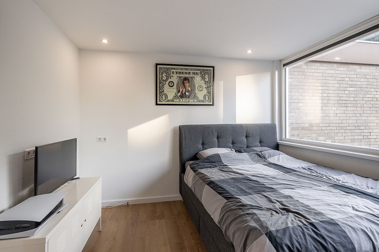 Slaapkamer aan de voorzijde voorzien van kunststof kozijnen met verhuisraam.