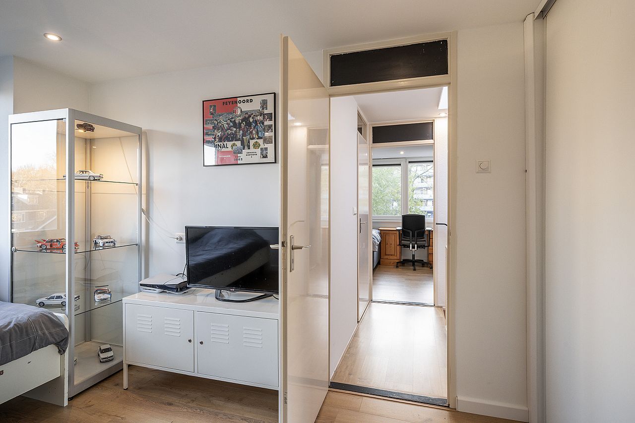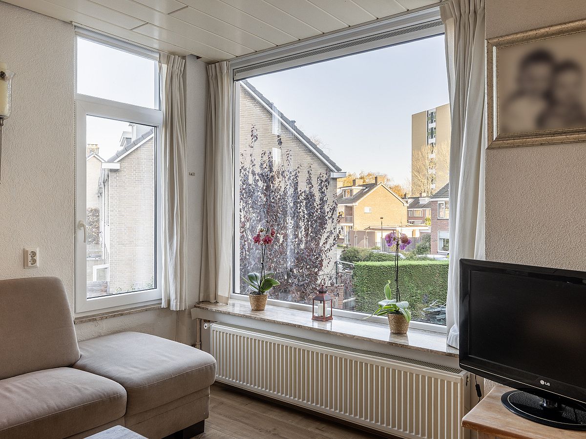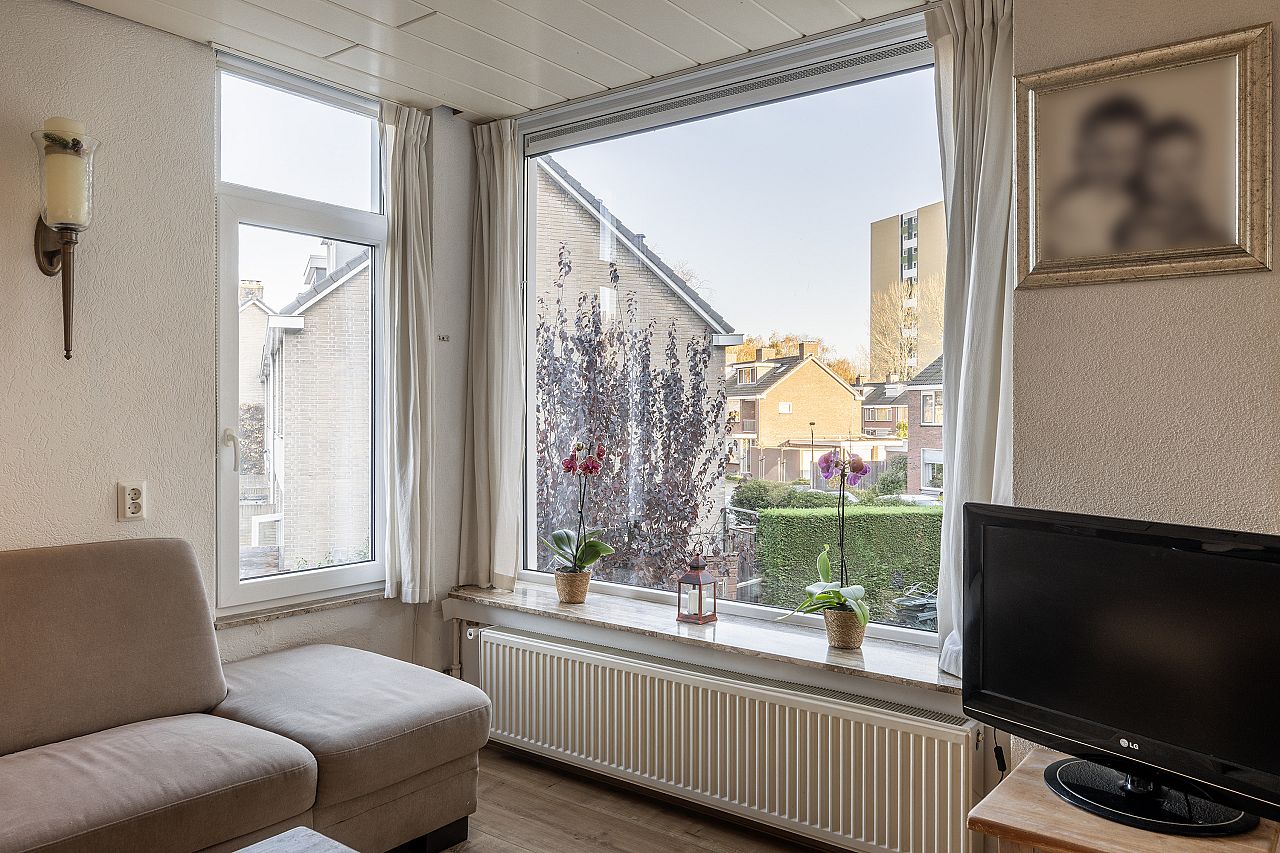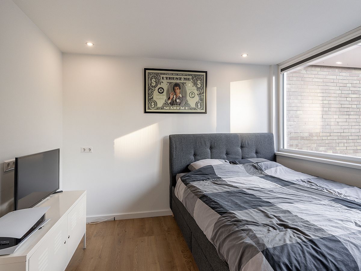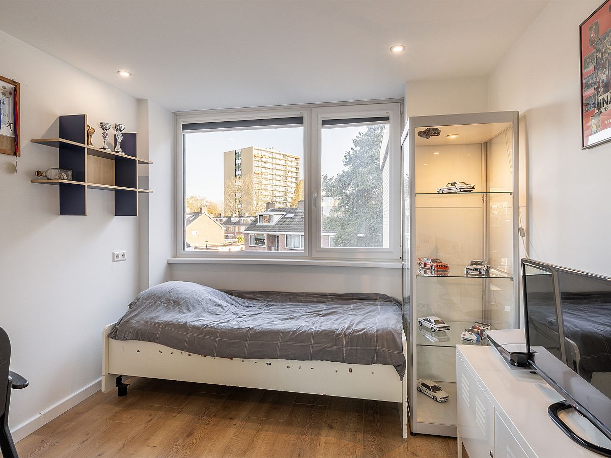 Slaapkamer aan de voorzijde voorzien van kunststof kozijnen met verhuisraam.