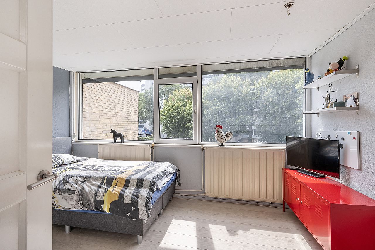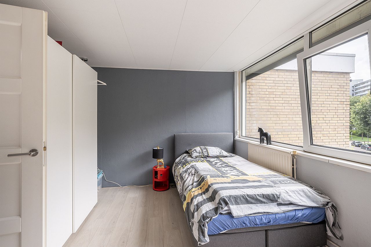 Slaapkamer aan de voorzijde van de woning met rolluik.