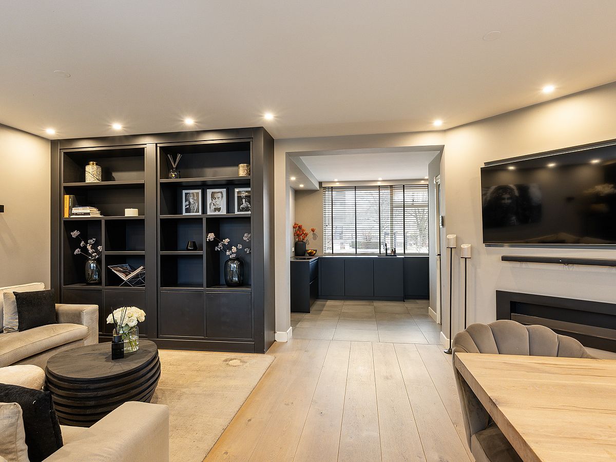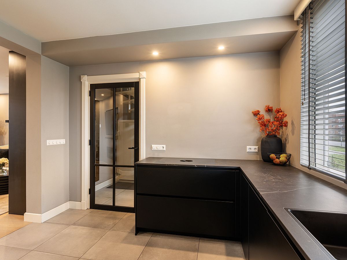 Entree/tochtportaal; hal; nette en betegelde toiletruime voorzien van hangend closet en fonteintje; kelderkast alwaar vernieuwde meterkast; uitgebouwde woonkamer voorzien van sfeervolle houten vloerdelen en schuifpui naar de tuin; open keuken in U-opstelling en voorzien van zwarte frontinrichting en Dekton aanrechtblad, inbouwapparatuur, te weten: Bora inductiekookplaat met afzuiging, Quooker, koel-vriescombinatie, vaatwasser en prachtige plavuizen vloer. Inpandige berging alwaar wasmachine aansluiting en CV combiketel (Nefit 2010).