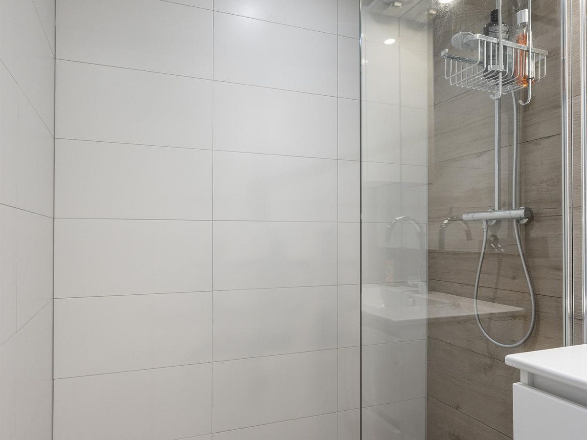 De kast met CV-ketel en vloerverwarming-unit en de meterkast bevinden zich vlakbij de entree.