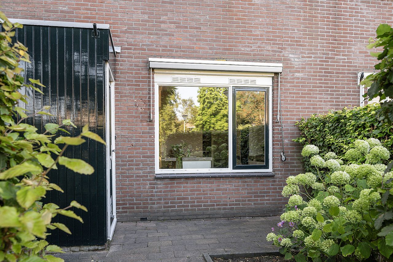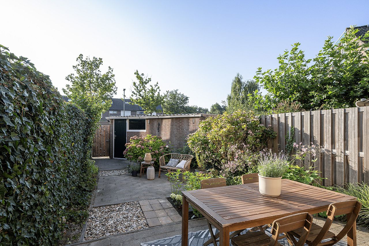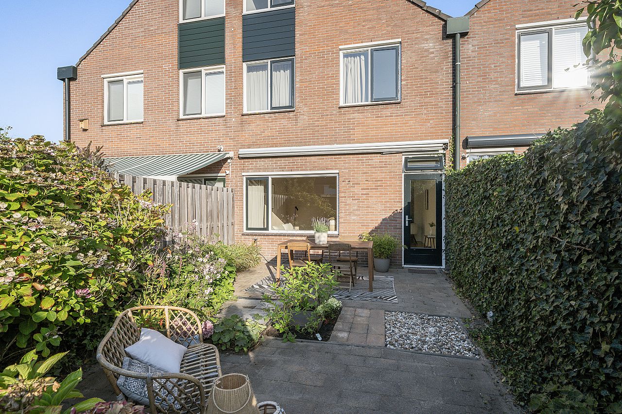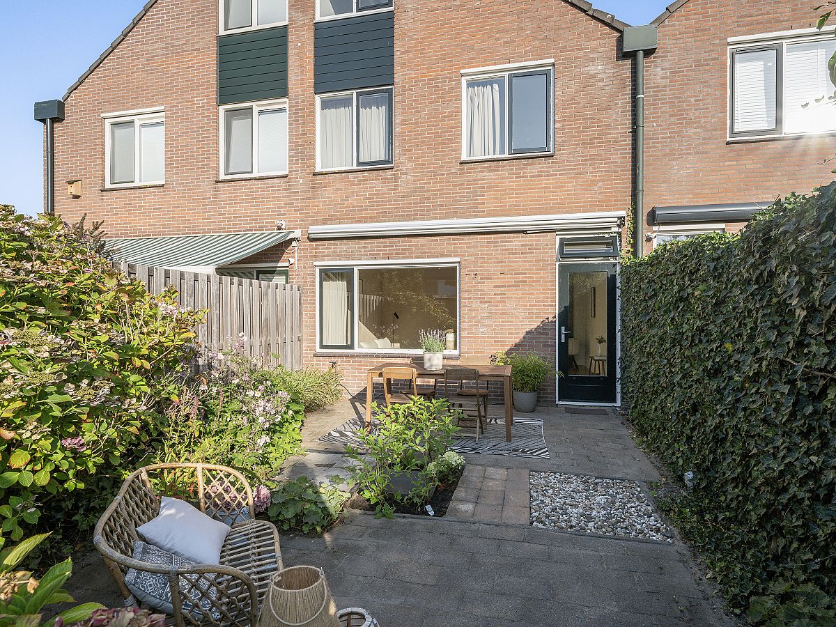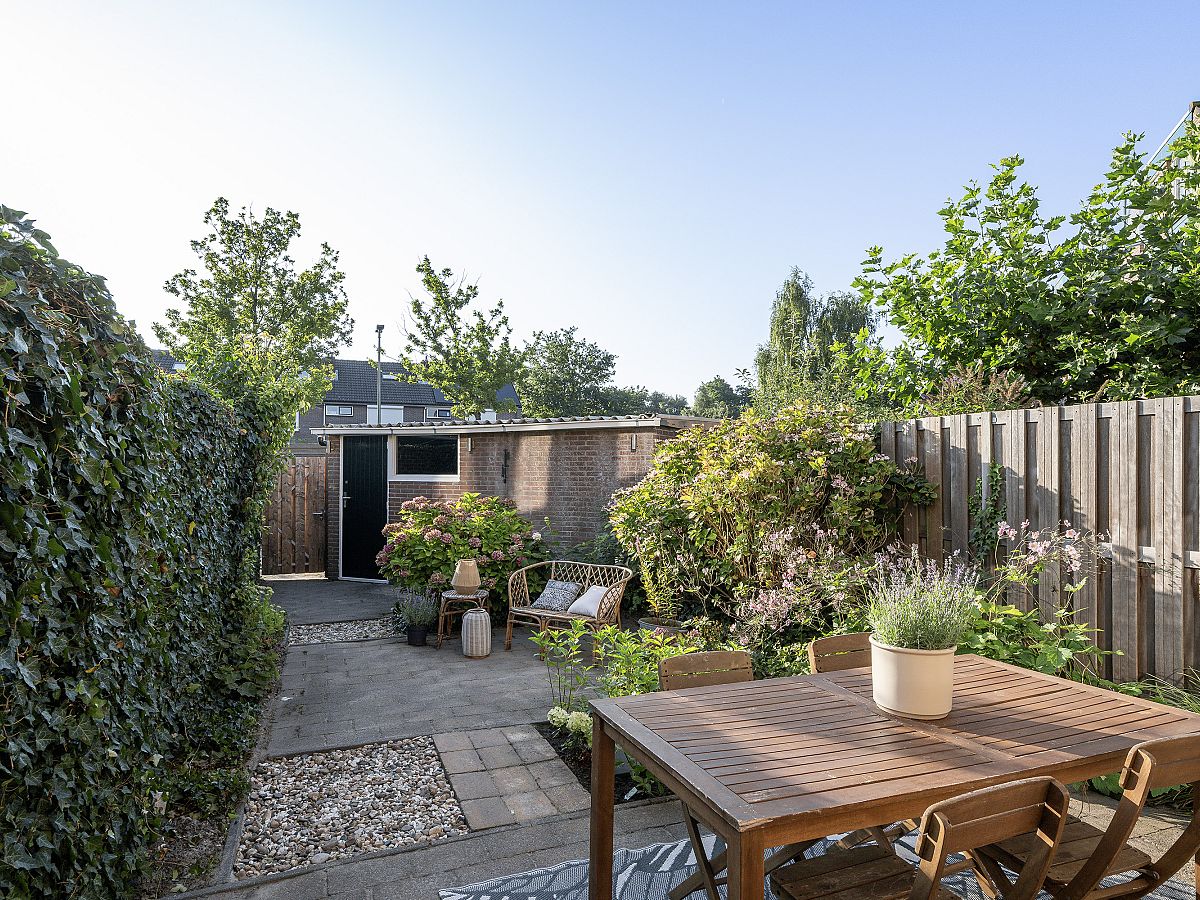 De tuin is verzorgd en op het zuidoosten gelegen met buitenkraan en stenen berging achterin. Achteruitgang, waar je tevens je auto makkelijk op de parkeerplaats kunt perkeren.
