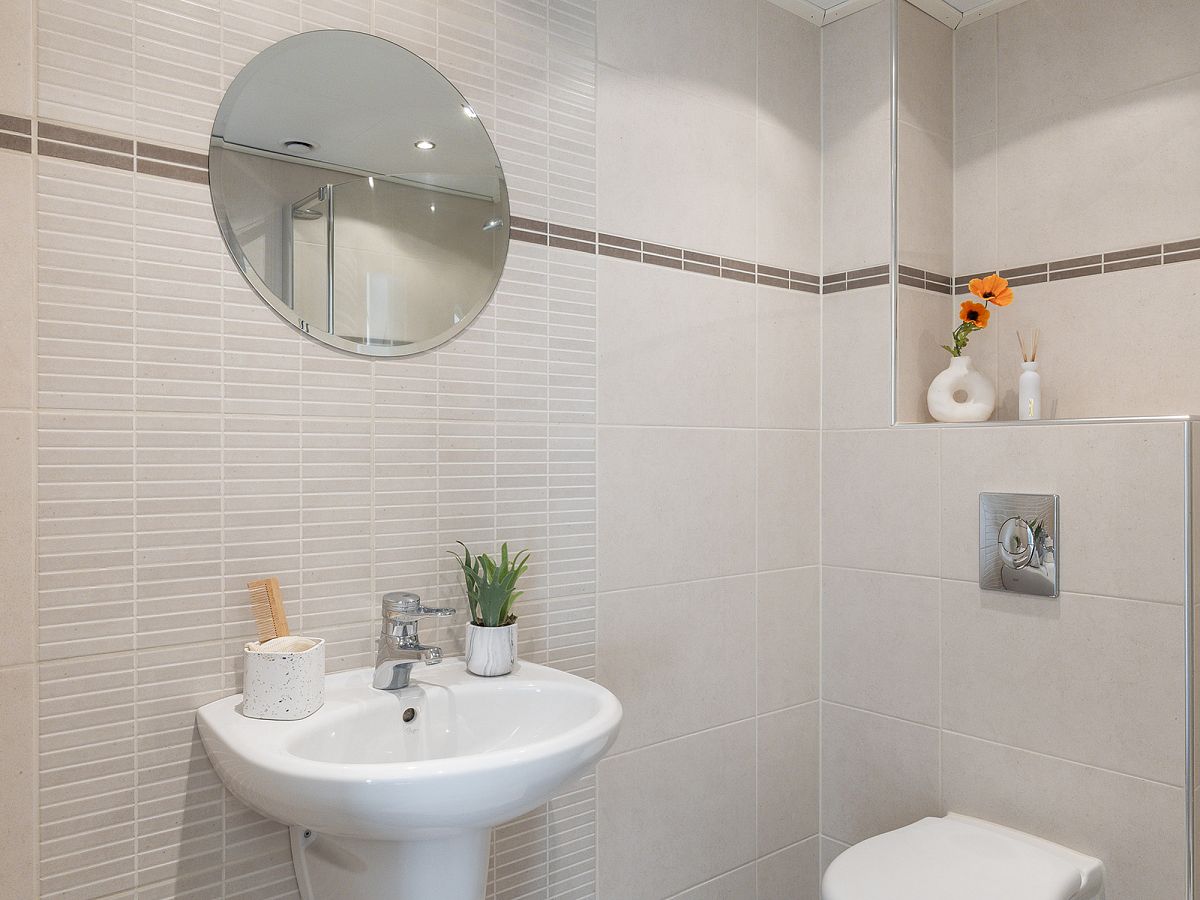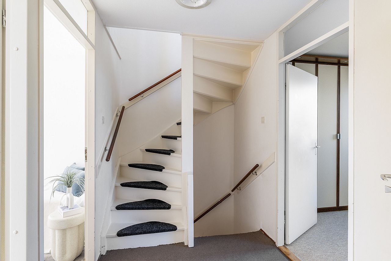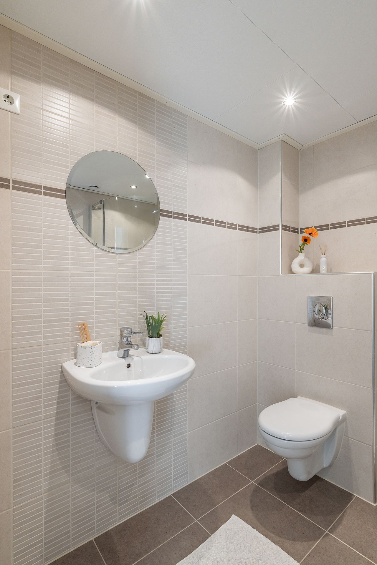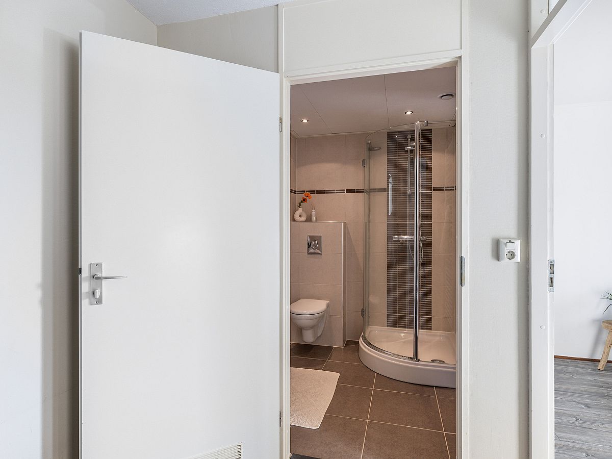 In de tussenhal bevindt zich de trapopgang en de toiletruimte met toilet en fonteintje.