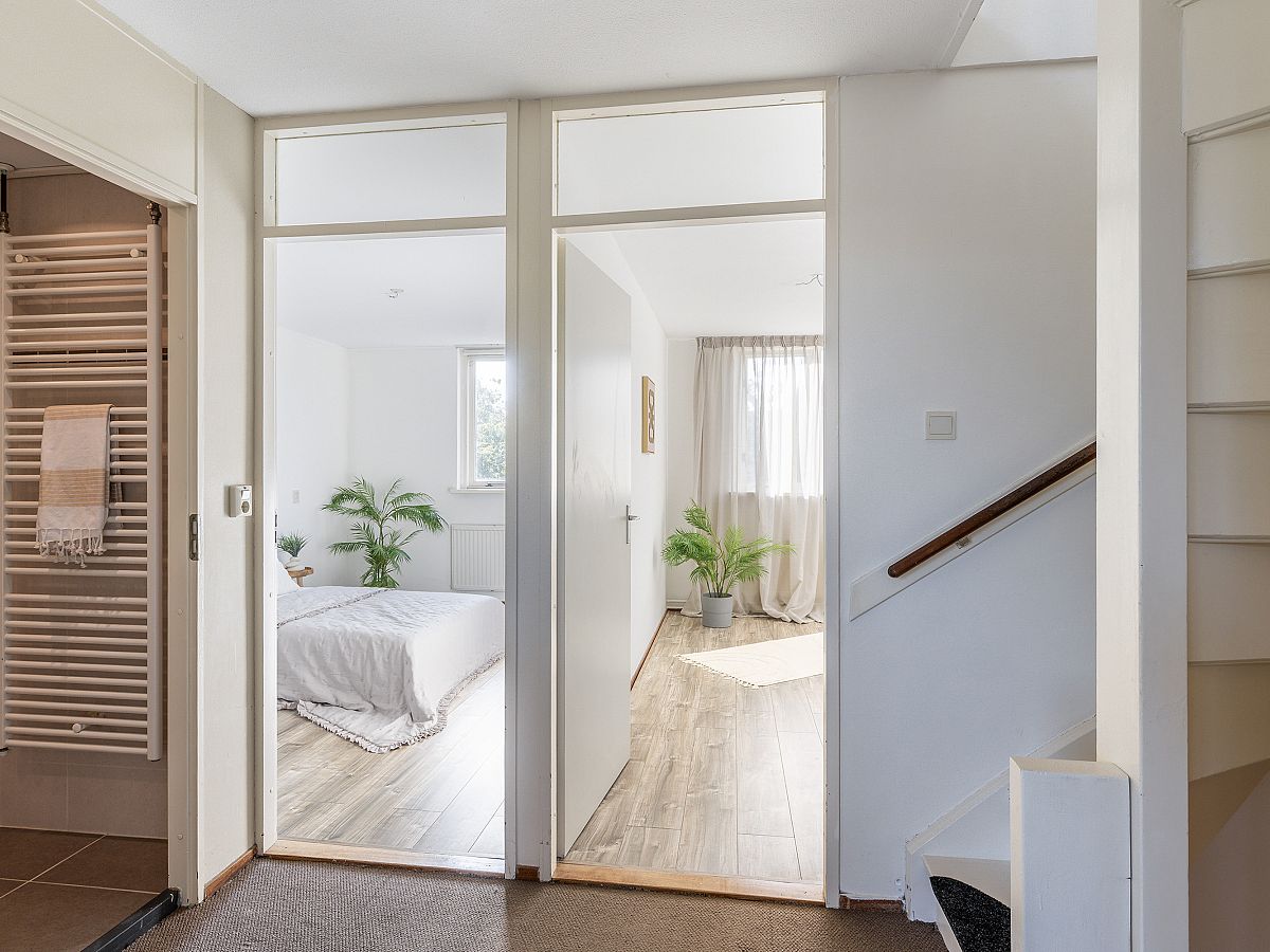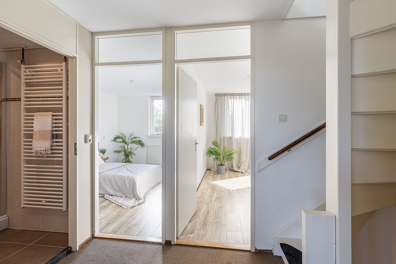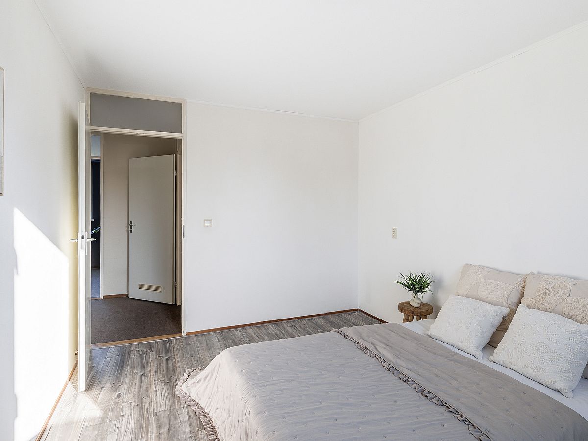 Ruime overloop; royale voorslaapkamer voorzien speelse houten achterwand, vaste kastenwand en verhuisraam ; lichte badkamer met douchehoek, wandclosetcombinatie, wastafel en mechanische ventilatie; 2 slaapkamers aan de achterzijde voorzien van laminaatvloer, hardhouten kozijnen en dubbel glas.