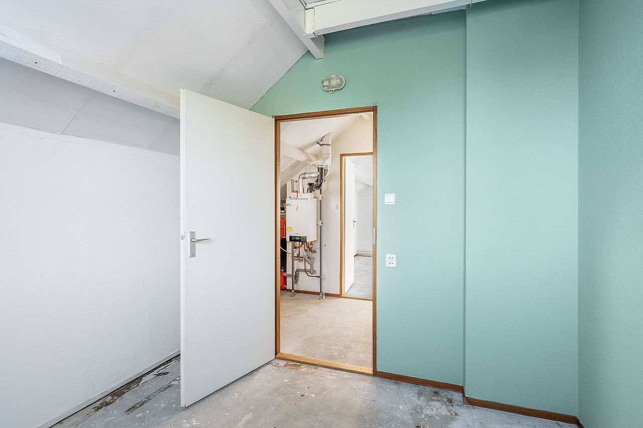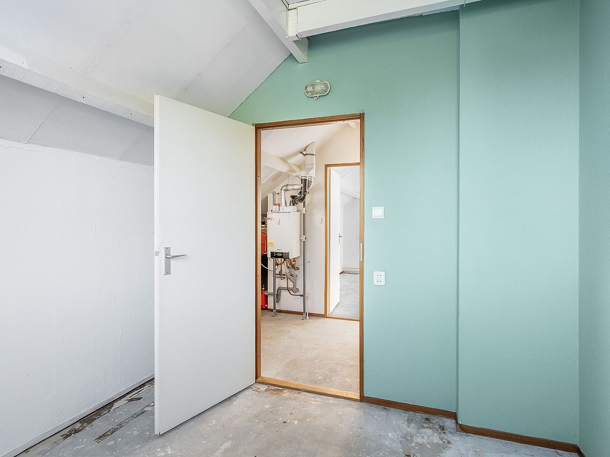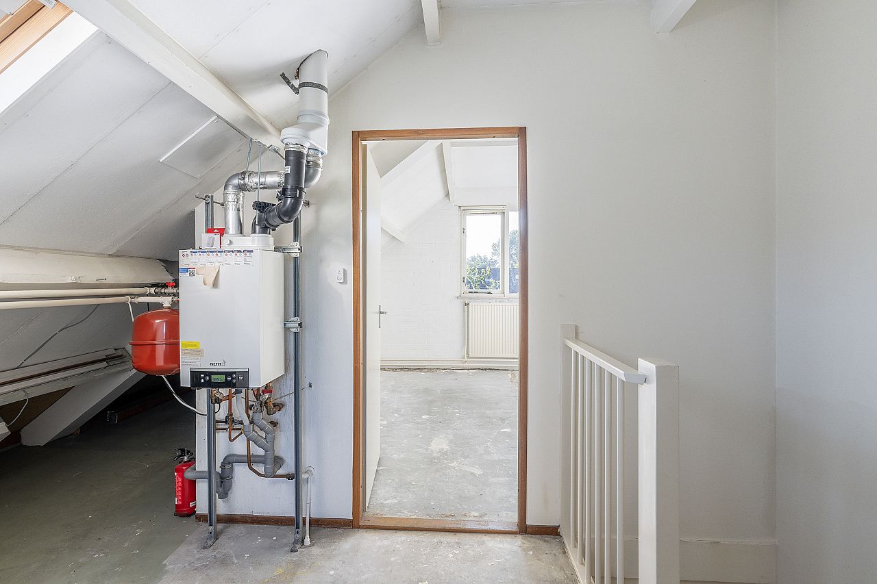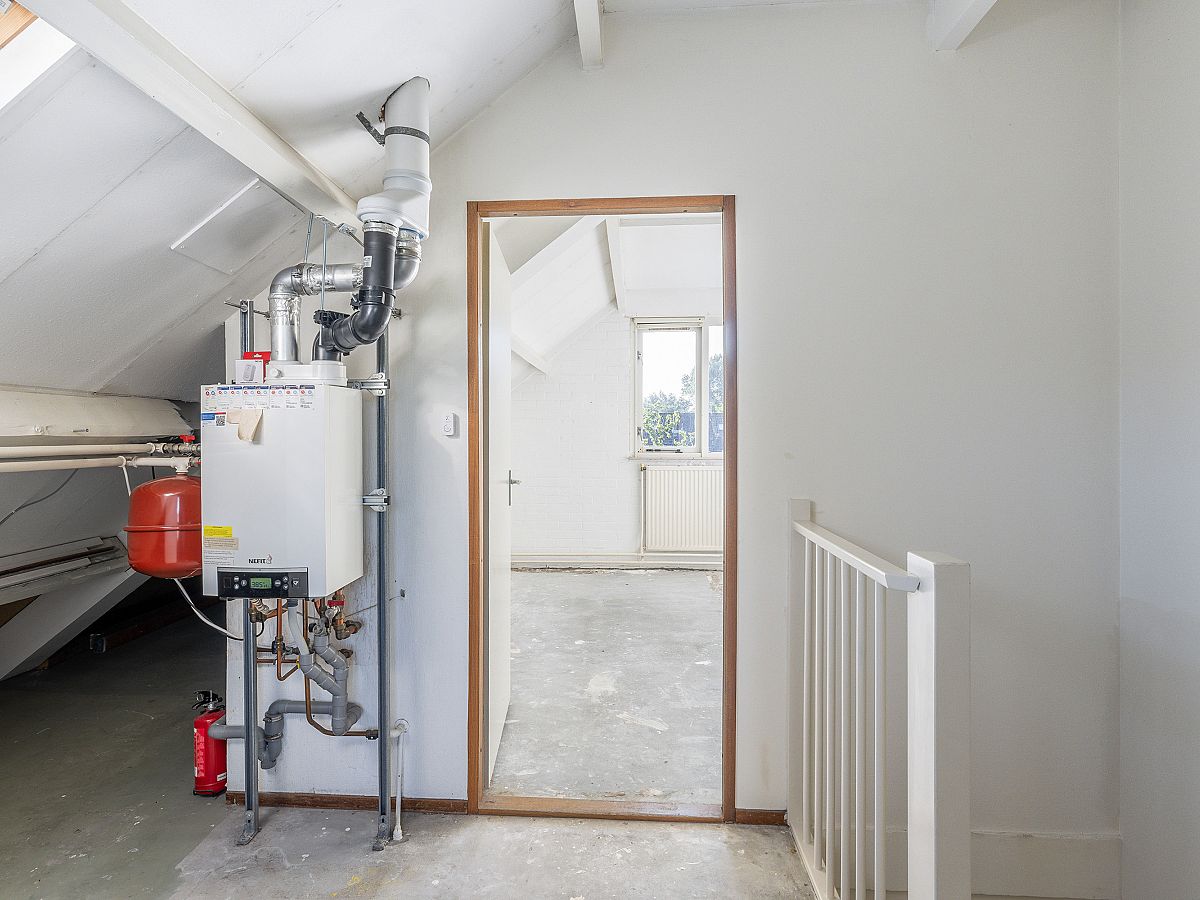 Ruime overloop met Velux dakraam, opstelling van de c.v. combiketel en aansluiting voor wasmachine/droger.