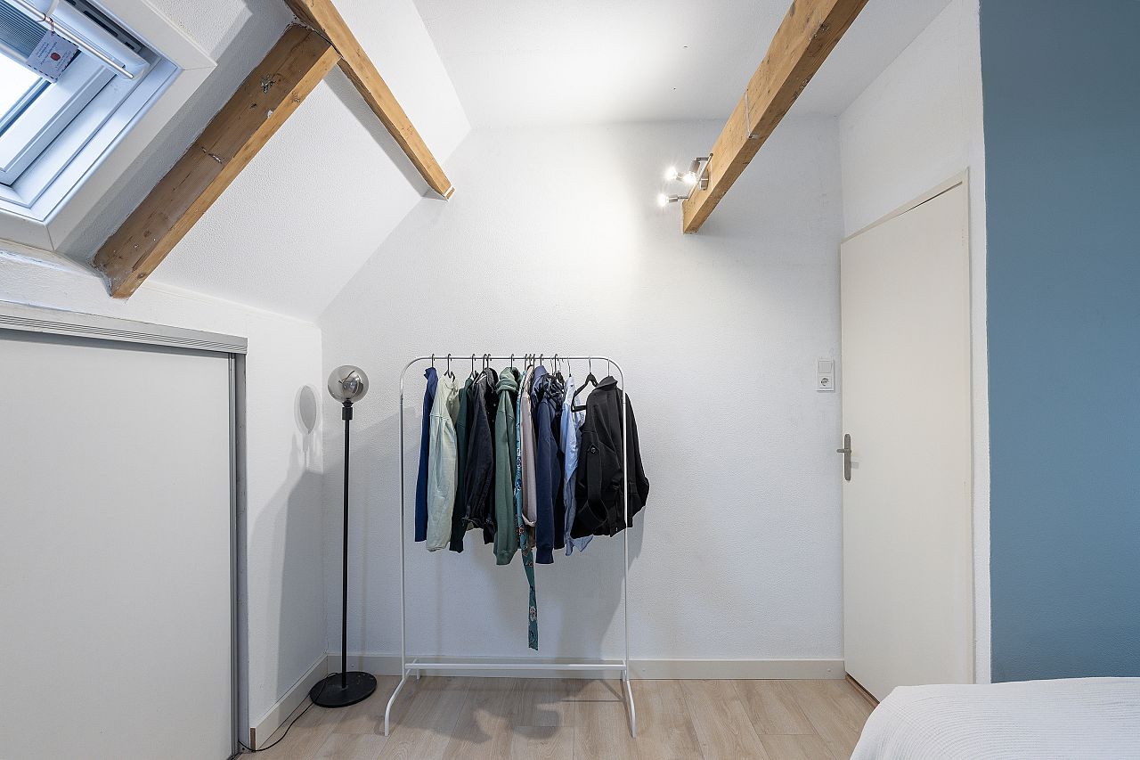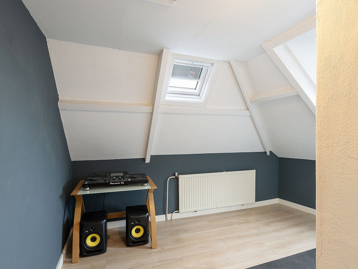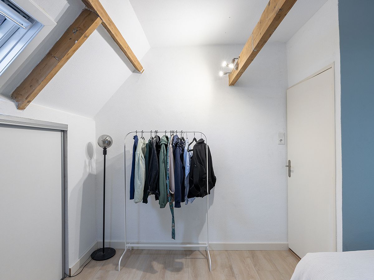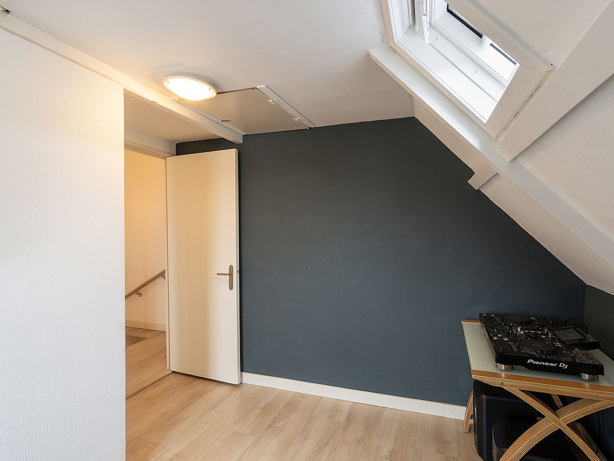 De achterslaapkamer heeft ook een dakraam en dakkapel. Van hieruit is de vliering bereikbaar.