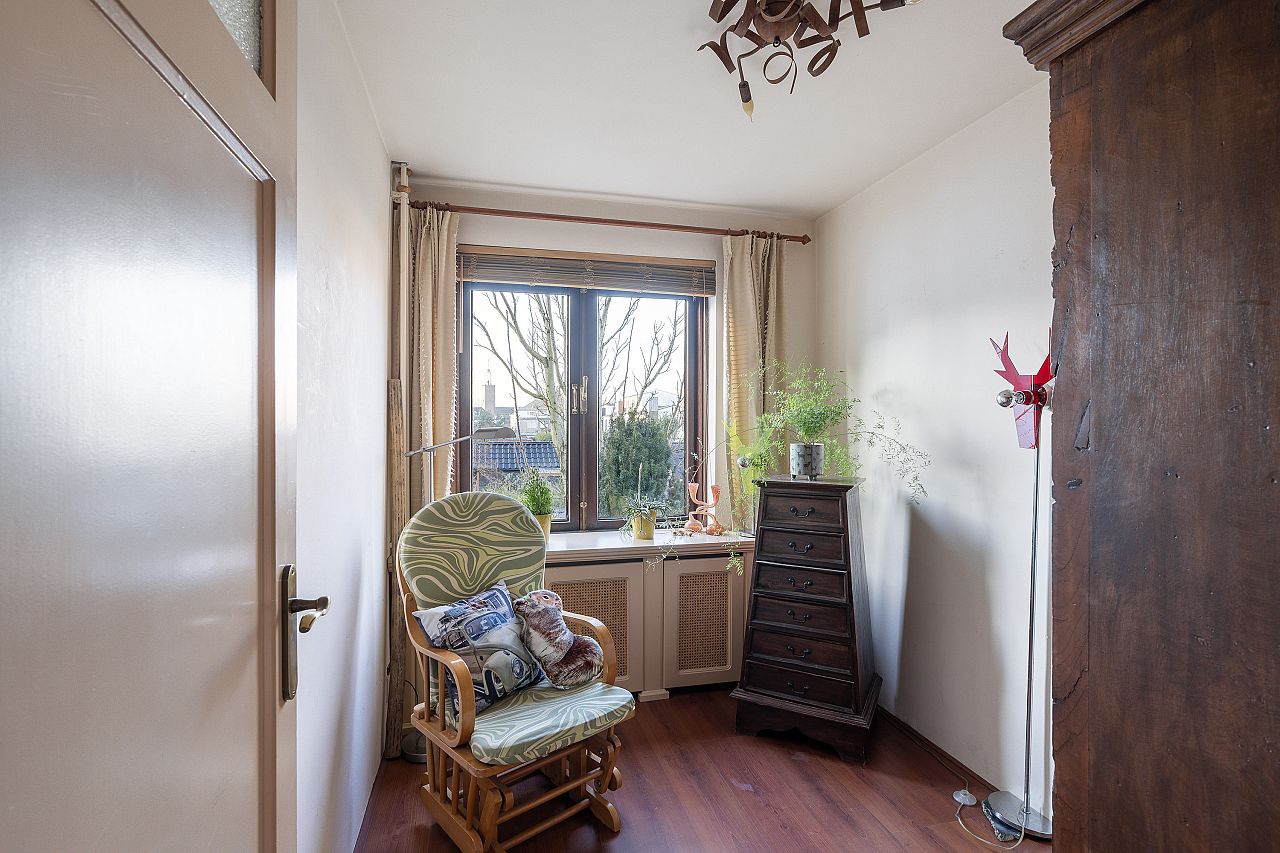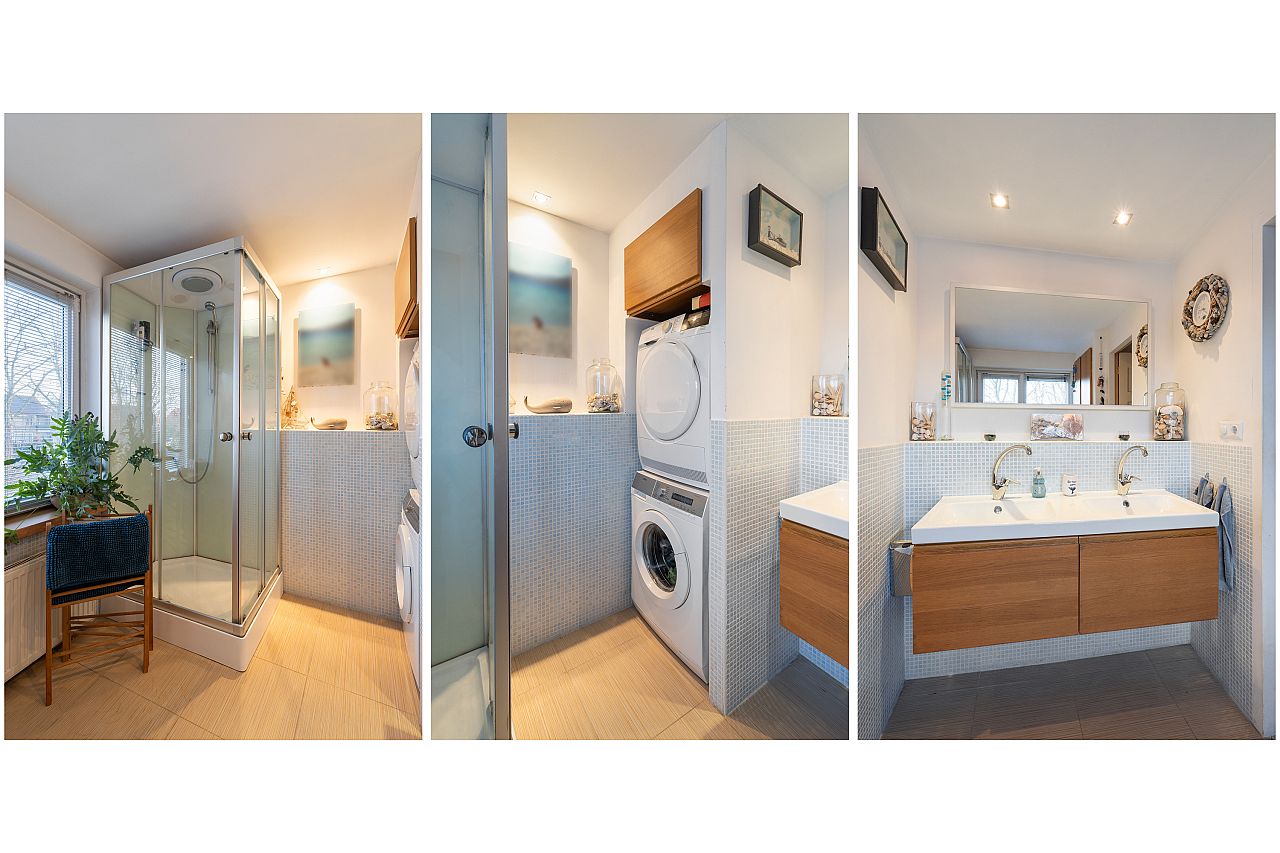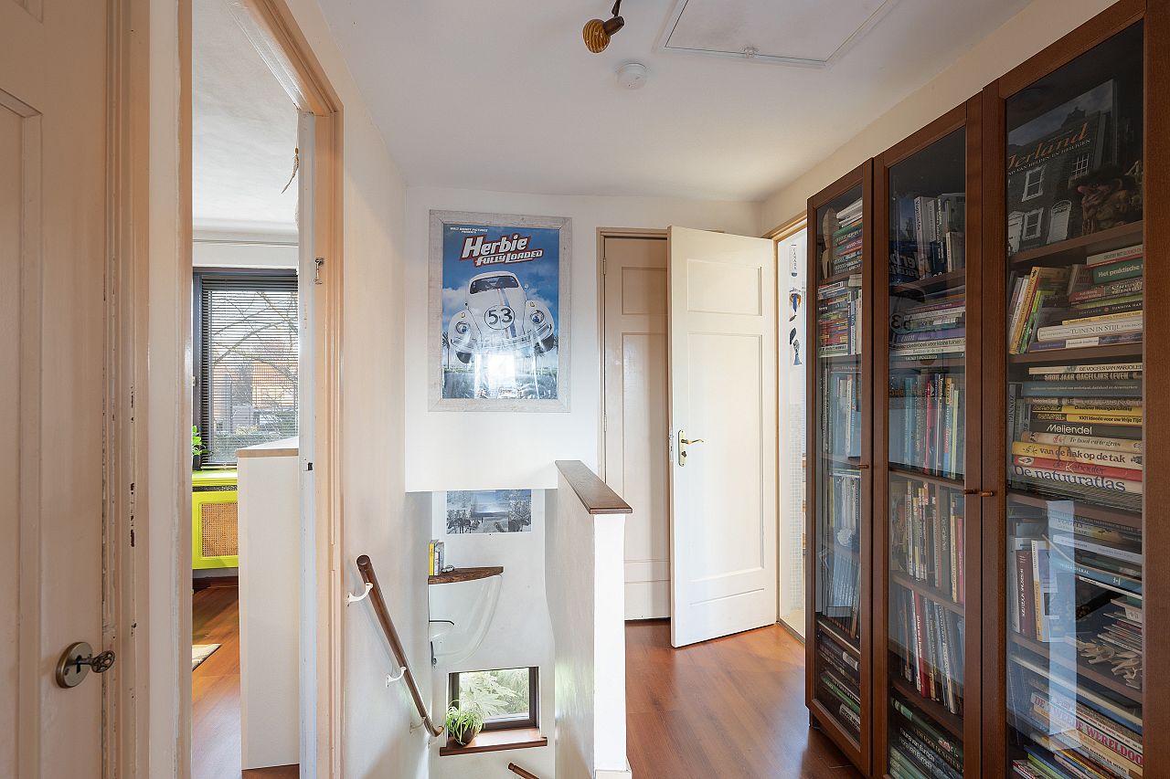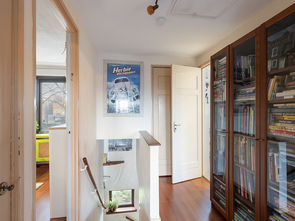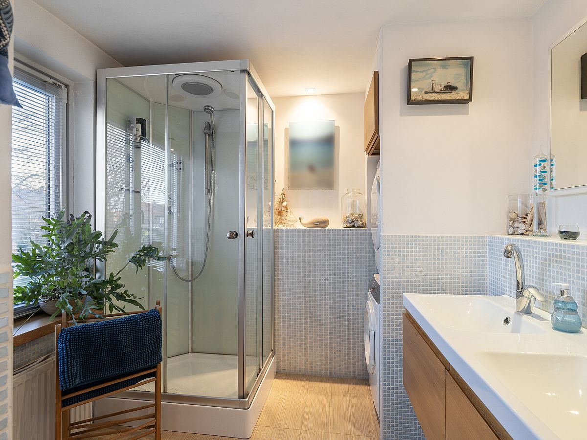 overloop met vaste kast alwaar de cv ketel (verouderd) en toegang tot 3 slaapkamers, allen voorzien van laminaatvloer de voorslaapkamer is voorzien van kunststof kozijnen en dubbele beglazing; de 2 achterslaapkamers hebben houten kozijnen met dubbele beglazing en zijn voorzien van screens; aparte toiletruimte (sanibroyeur); ruime badkamer in lichte kleurstelling en voorzien van hoekdouche, dubbele wastafelmeubel en opstelplaats voor de wasmachine en droger.
