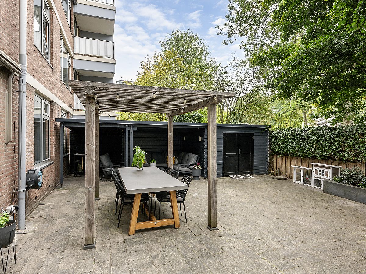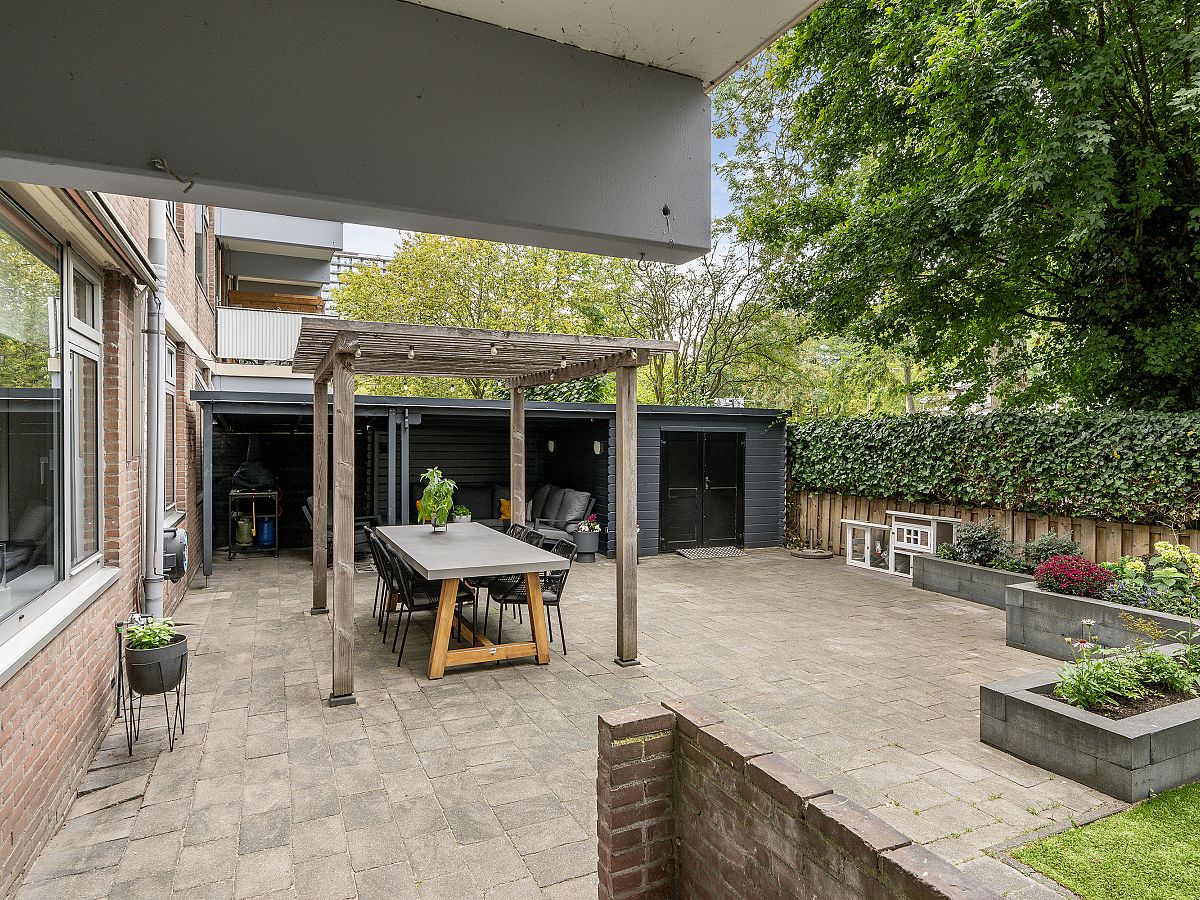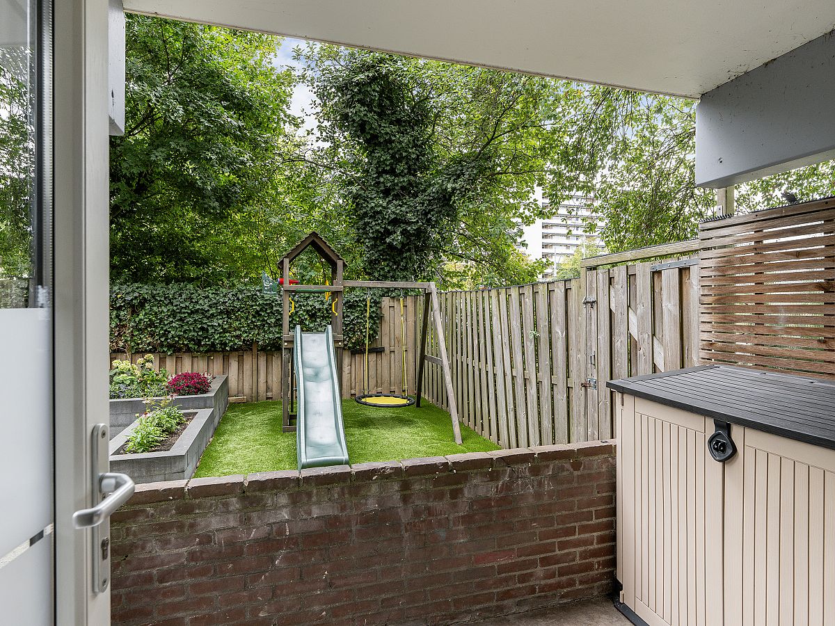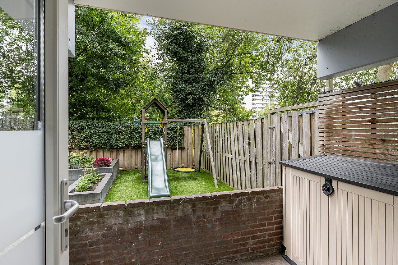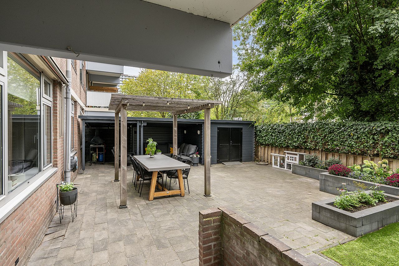Wat deze woning echt bijzonder maakt is de fraaie tuin van maar liefst ca. 8.10 meter diep en 13 meter breed, gelegen op het zonnige zuiden. De tuin biedt volop ruimte voor een loungeset, eettafel, speeltoestellen of zelfs een kleine moestuin. Aan de zijkant van de tuin staat een ruime schuur, ideaal voor fietsen of tuingereedschap.