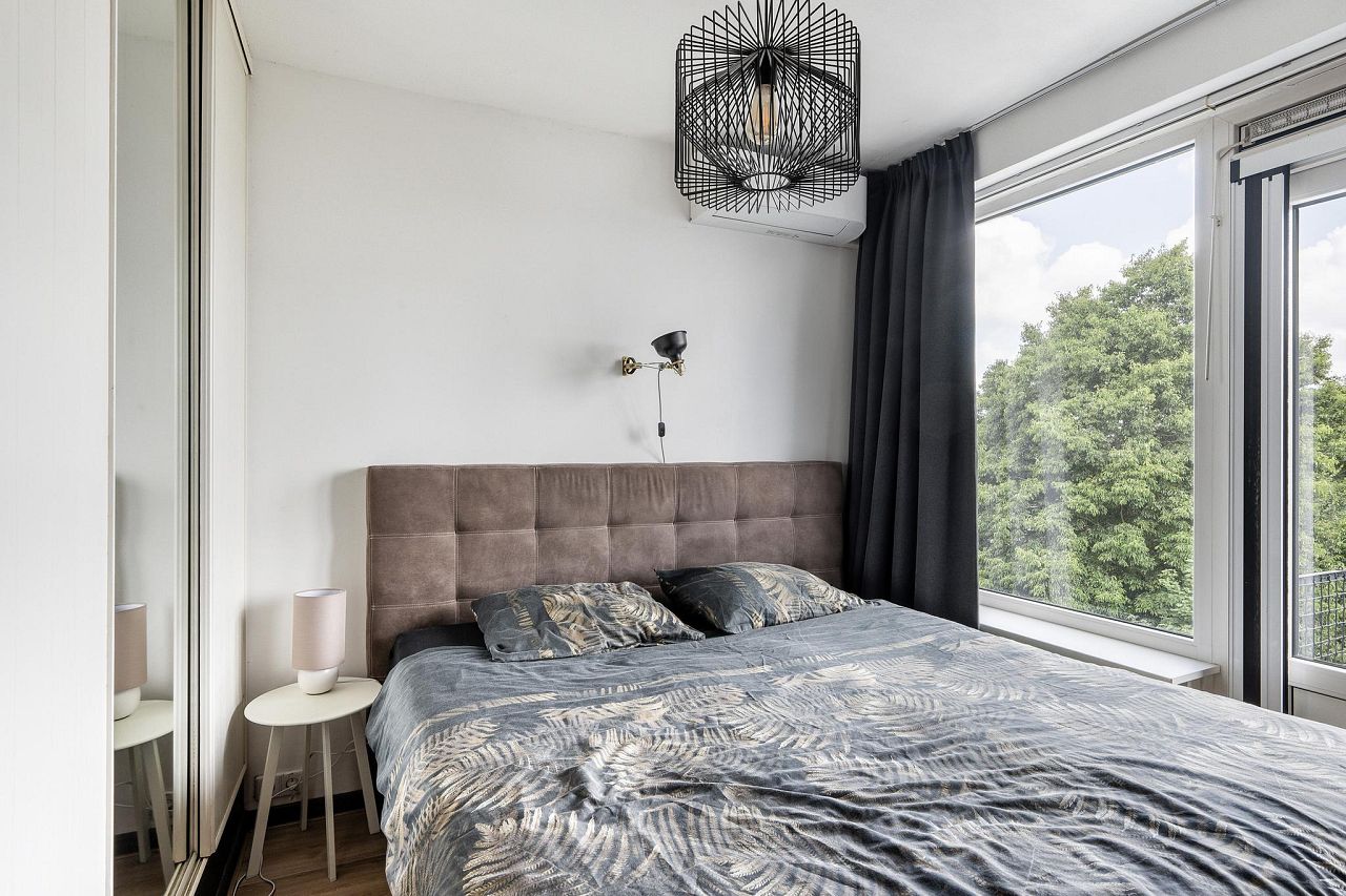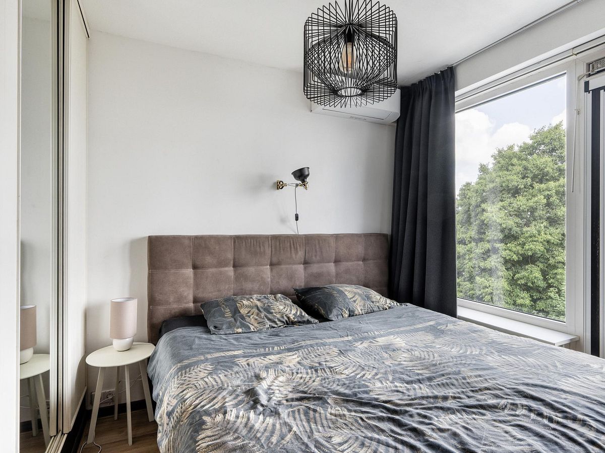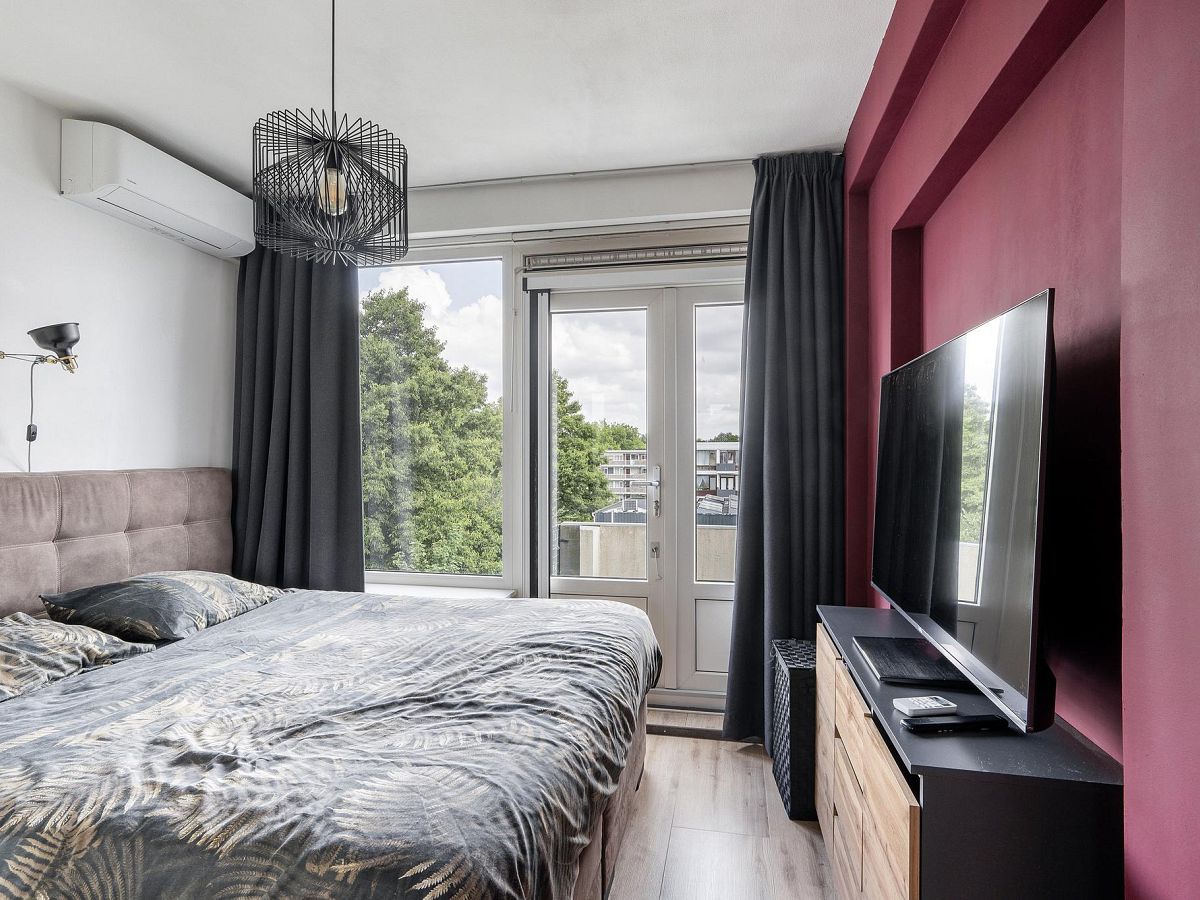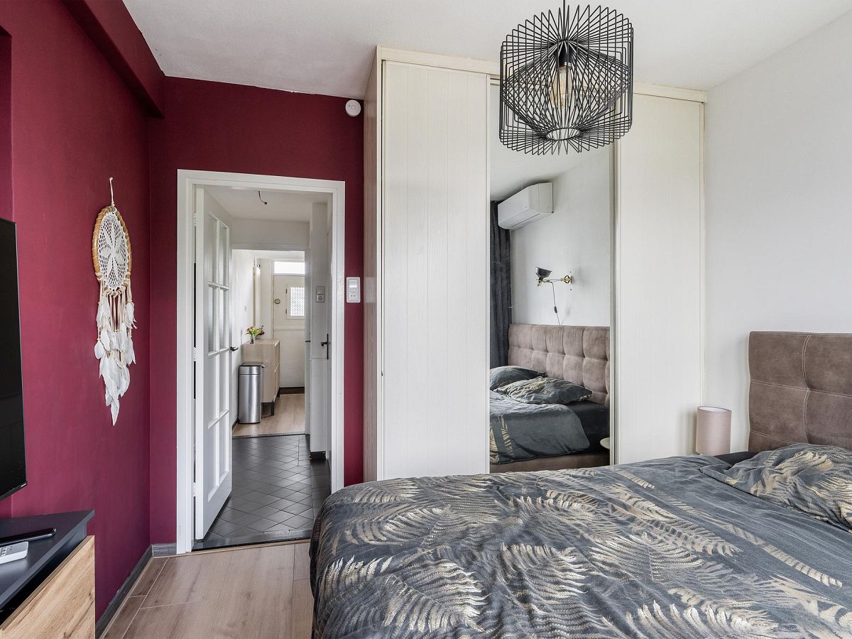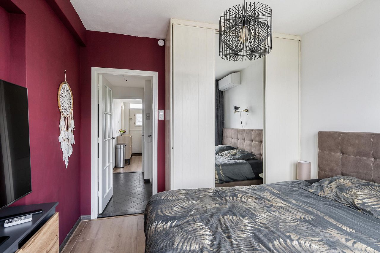 De ouderslaapkamer heeft een vaste kast met spiegeldeuren, is voorzien van airco en biedt toegang tot het balkon.