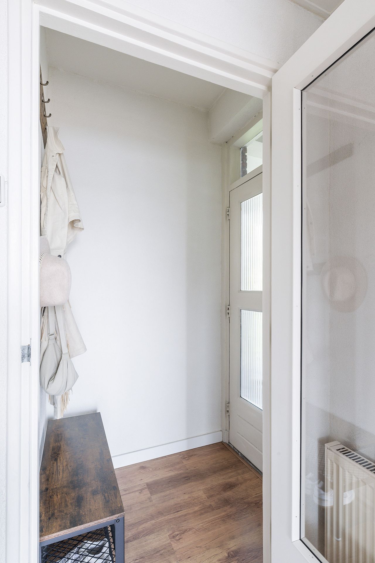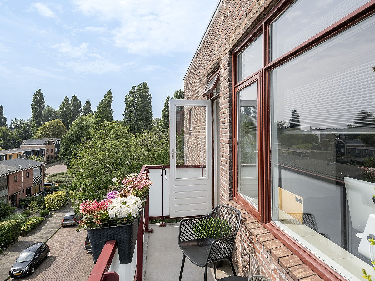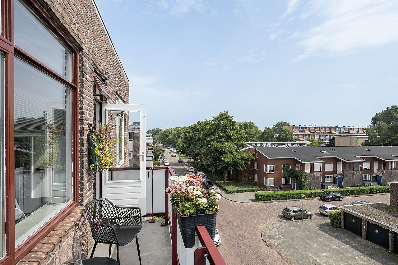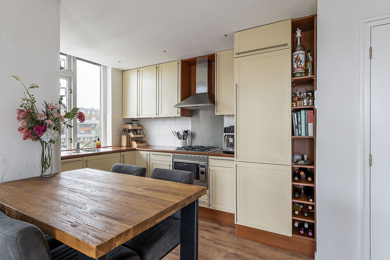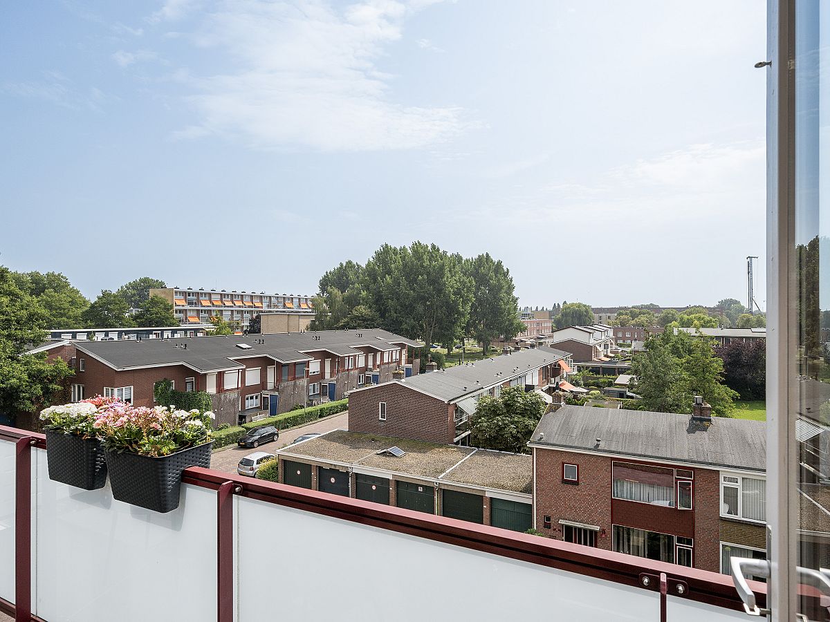 Entree, tochtportaal; vernieuwde meterkast. De woonkamer met open hoekkeuken is praktisch ingedeeld. Vanuit de woonkamer is er toegang tot het balkon. De keuken heeft vanille kleurige fronten en een houtlook aanrechtblad en is uitgerust met een combimagnetron, koel-vriescombinatie, 4-pits gaskookplaat, afzuigkap en vaatwasser. Aan de zonkant bevinden zich screens voor de ramen.