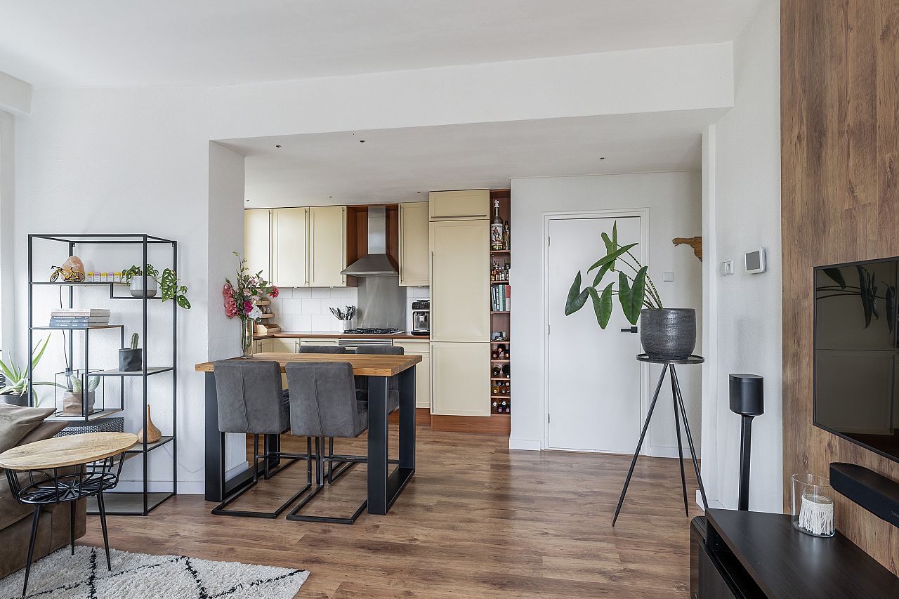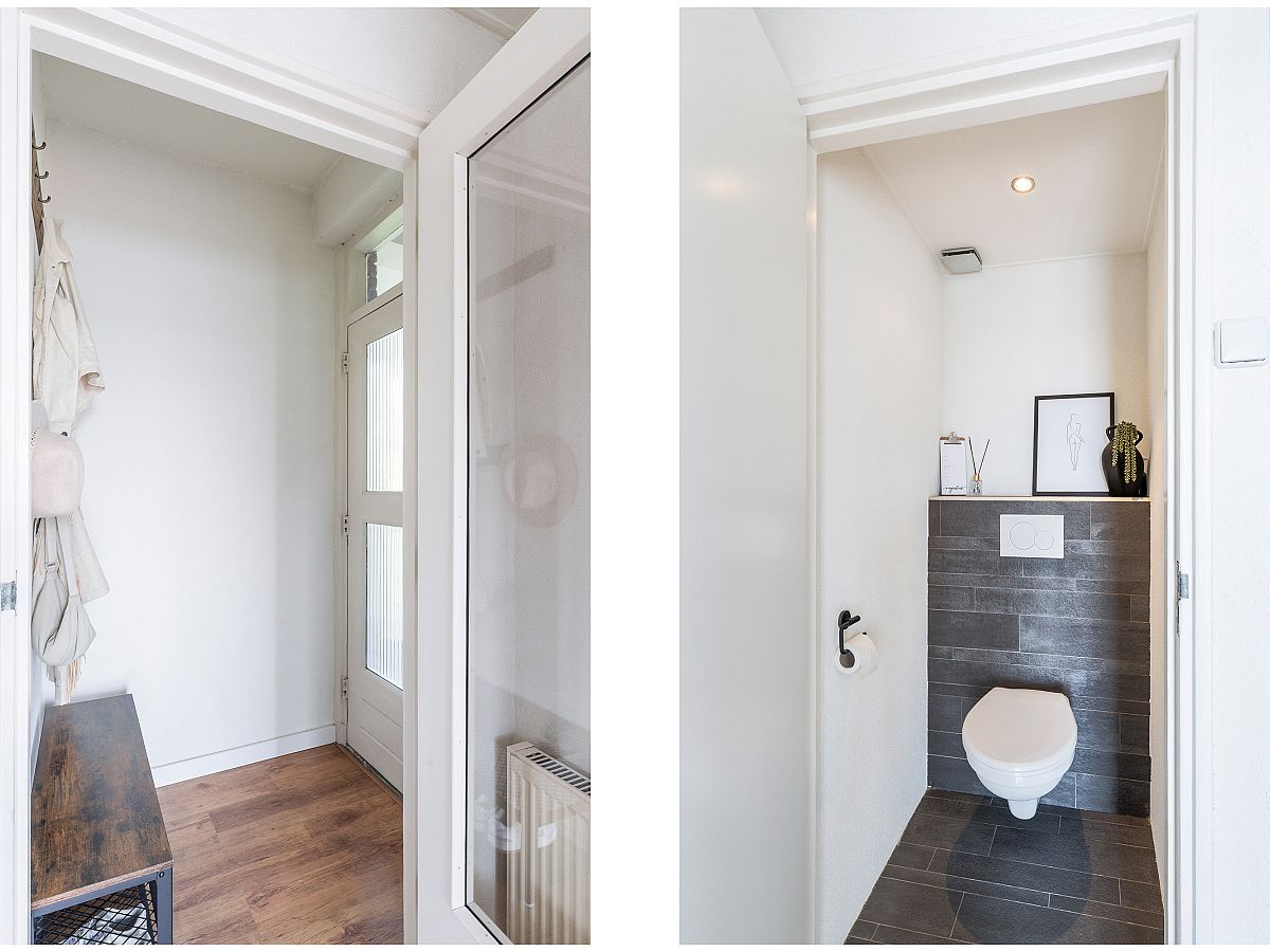 Door de hele woning ligt hetzelfde sfeervolle laminaat.