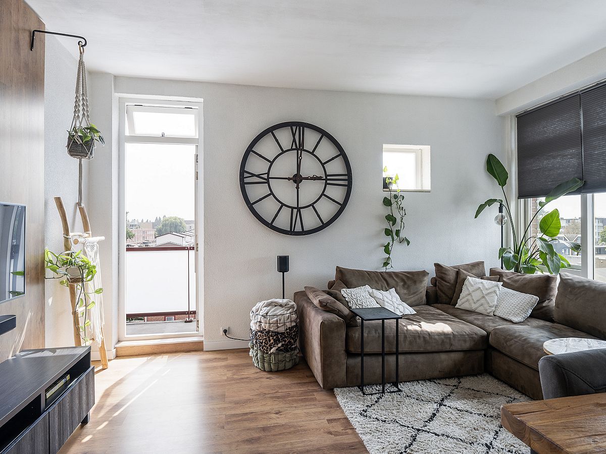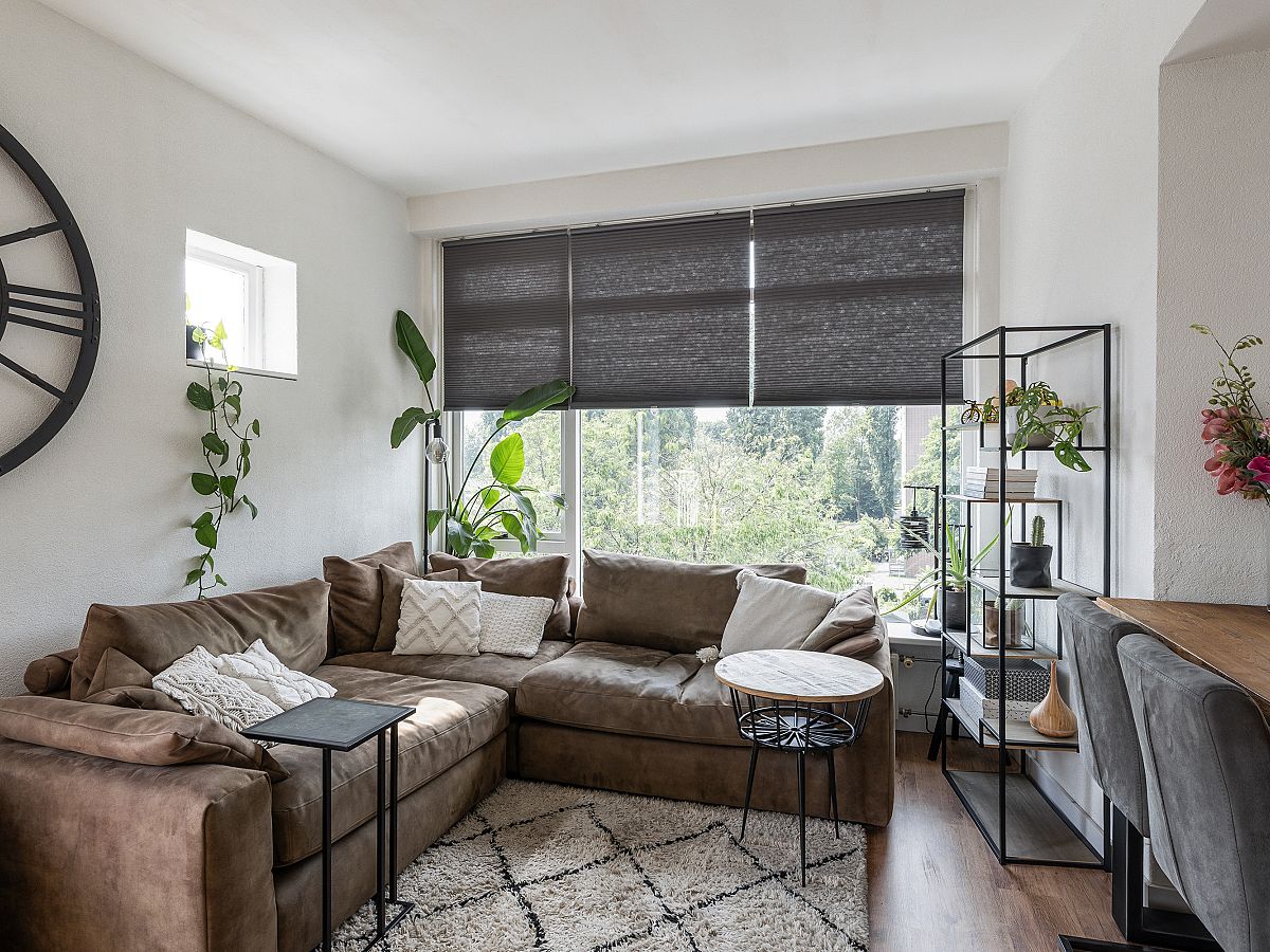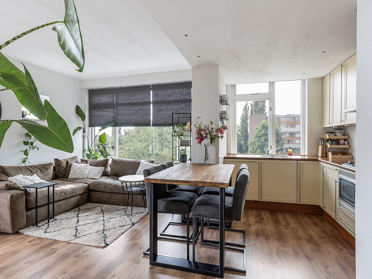 De ligging van het appartement op de hoek zorgt voor veel lichtinval en een wijds uitzicht.