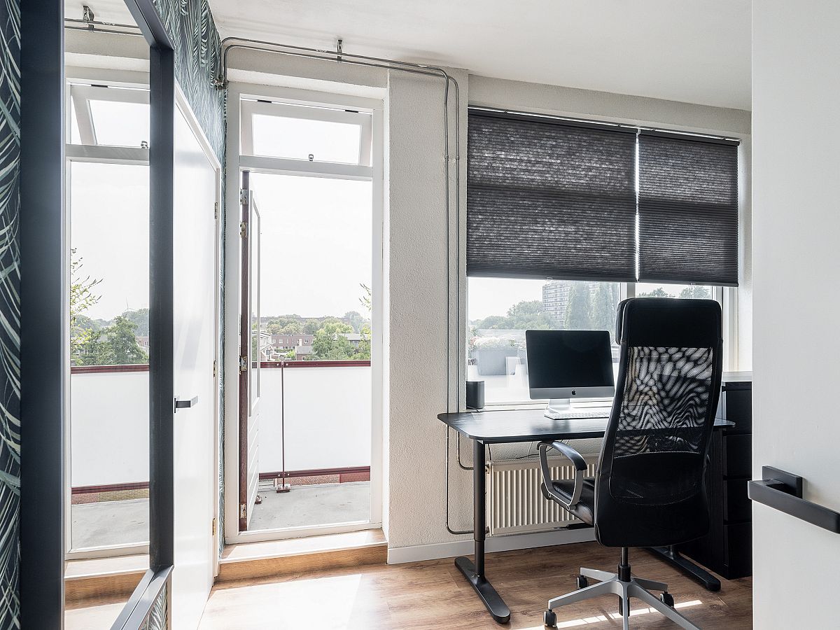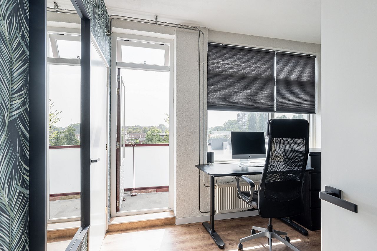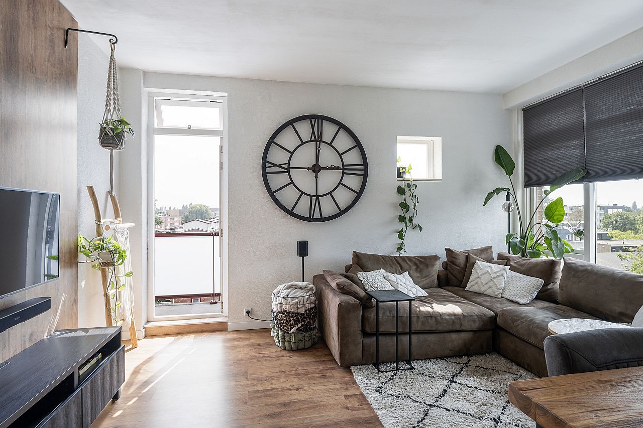 De ligging van het appartement op de hoek zorgt voor veel lichtinval en een wijds uitzicht.