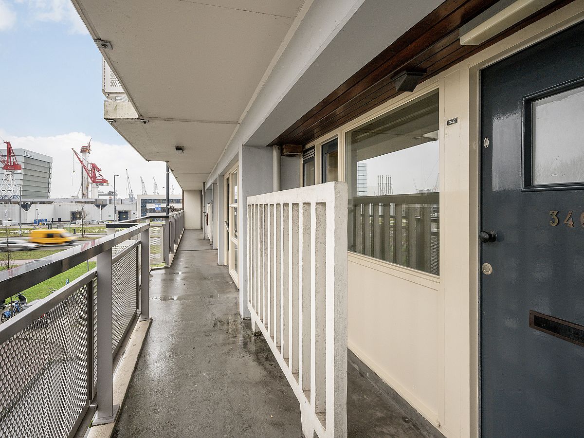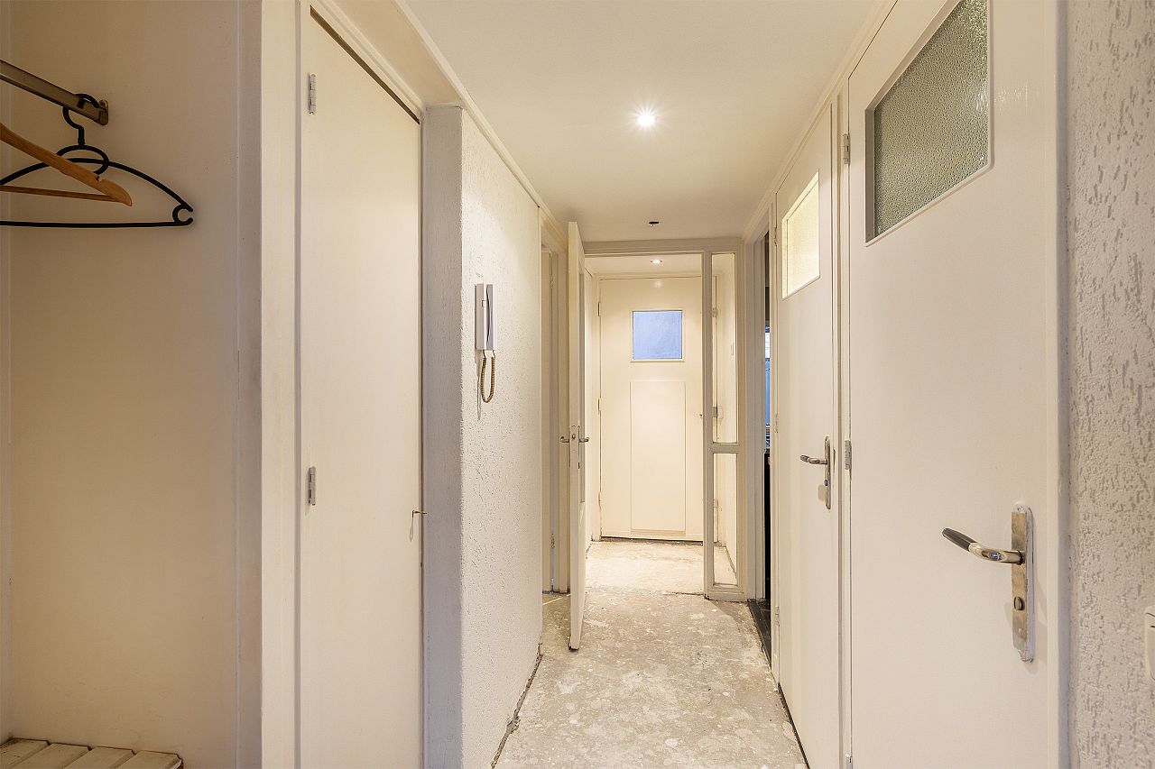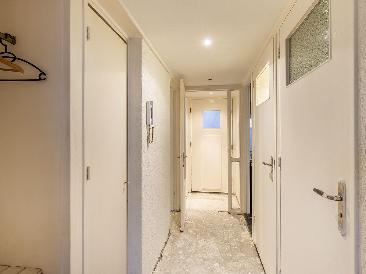 entree voorzien van een tochtportaal en toegang tot de hal; aan de rechterzijde is de ouderslaapkamer met inloopkast, alwaar tevens de aansluiting voor de wasmachine, en de 120 liter boiler; keuken aan de galerijzijde, welke dient te worden gemoderniseerd. Nette zwart/witte toiletruimte; moderne en ruime badkamer voorzien van Whirlpool ligbad, douchecabine en wastafelmeubel; in de gang bevindt zich de meterkast (6 groepen en aardlekschakelaar) en garderobenis; ruime en lichte woonkamer (voorheen 2 kamers) met toegang tot het balkon en voorzien van kunststof kozijnen met dubbele beglazing; slaapkamer aan de voorzijde met 2 vaste kasten en kunststof kozijnen met dubbel glas.